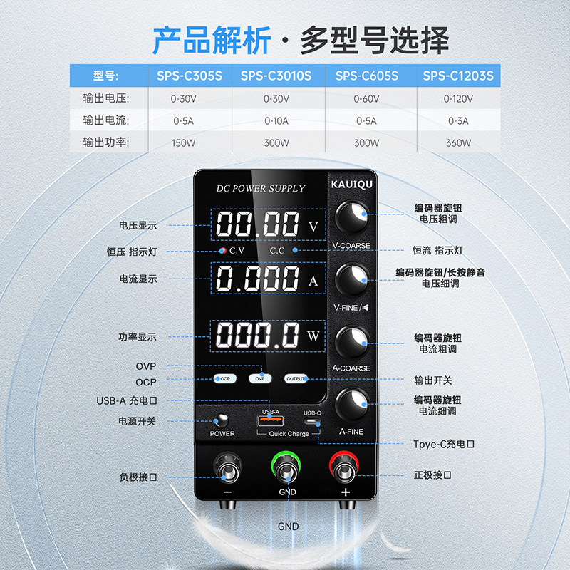 KUAIQU Quick SPS-C305S/C3010S/C605S/C1203S Регулируемый источник питания Экспериментальный тест