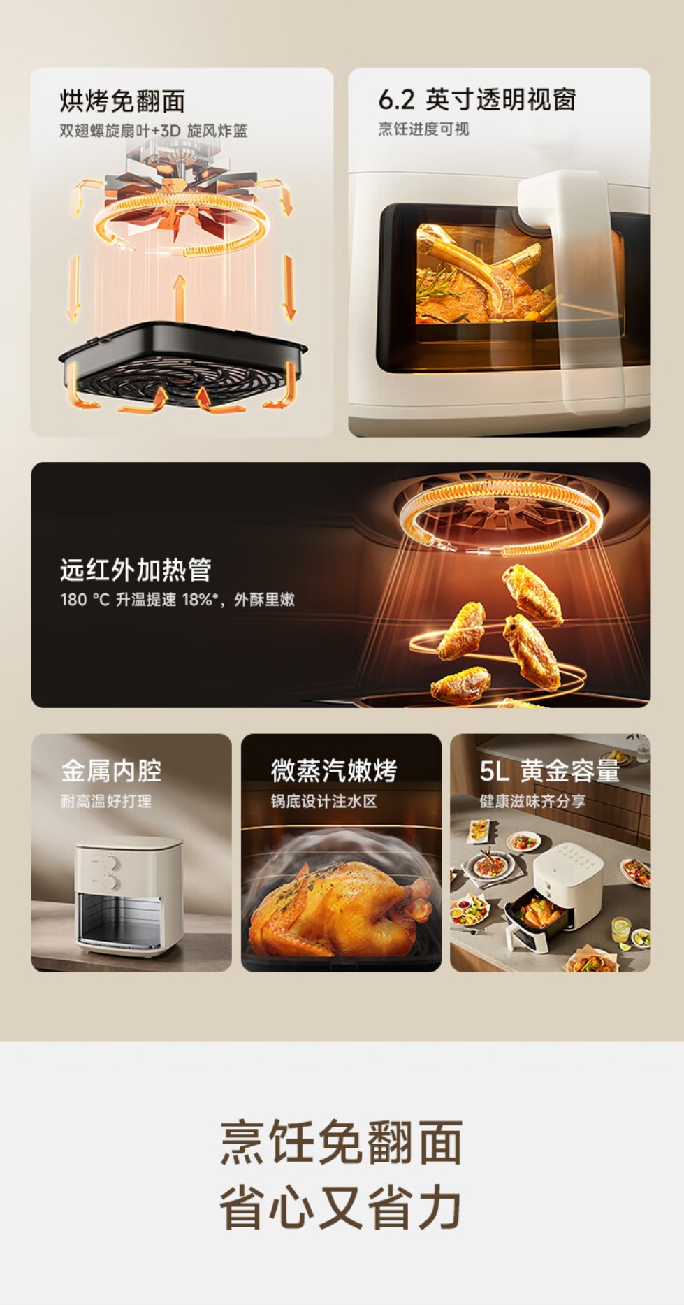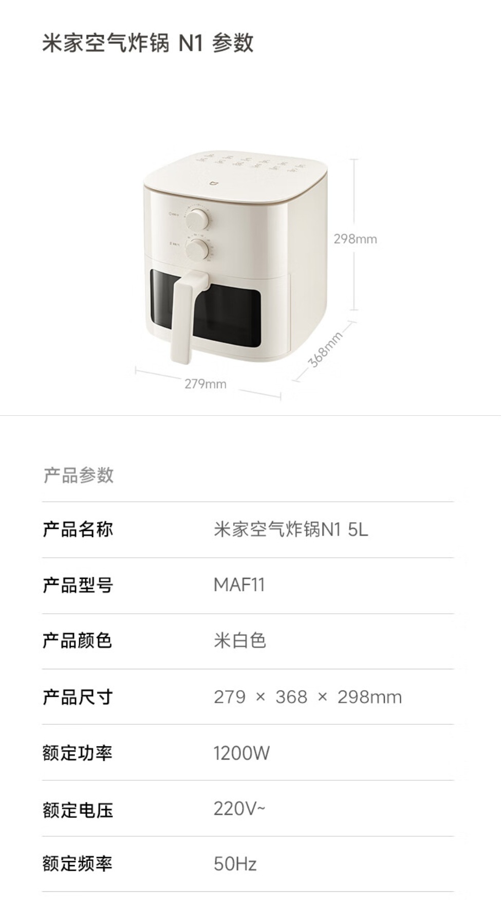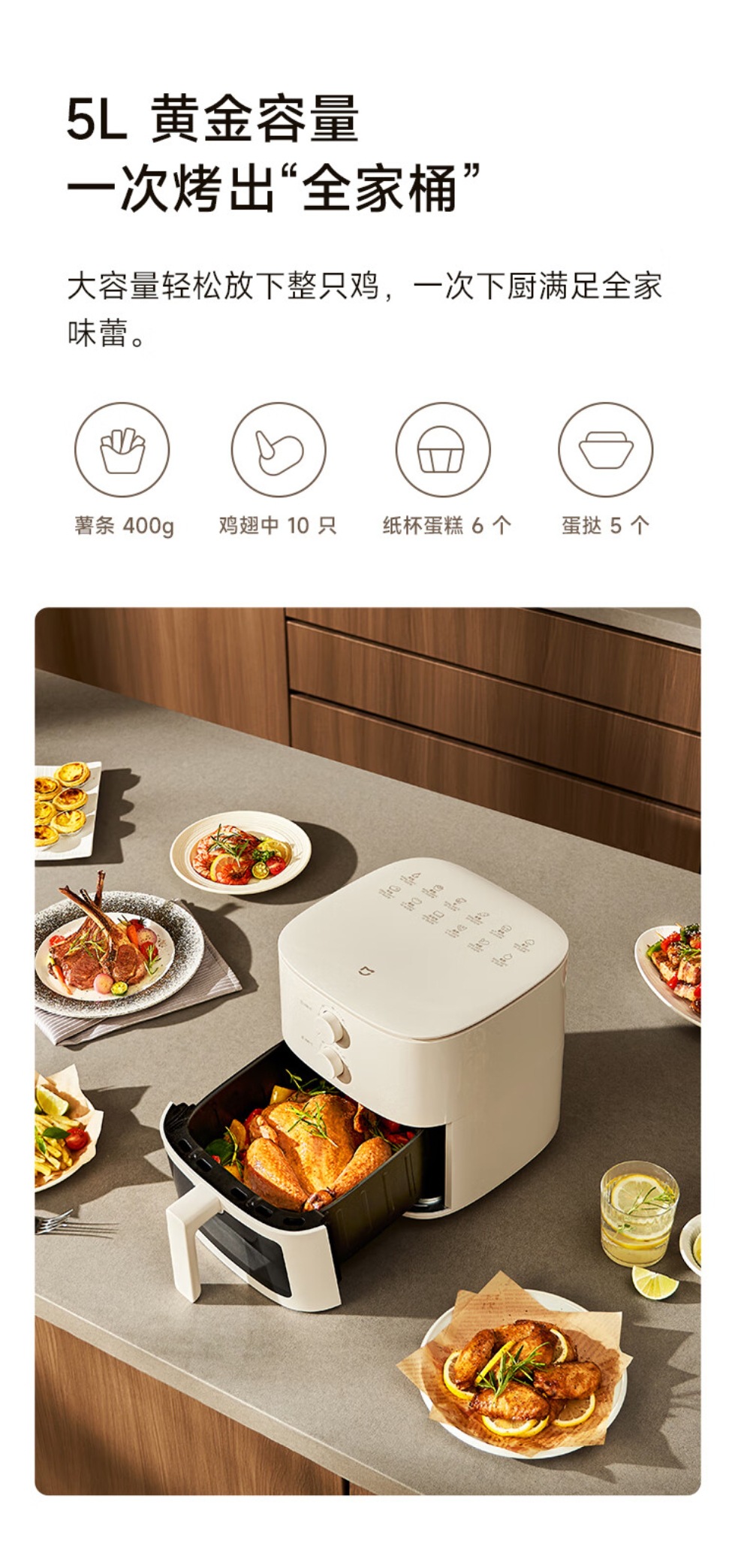 Xiaomi Mizia Air Frier N1 для домашнего использования многофункциональная визуализация без переворачивания большой емкости 5L металлическая внутренняя полость антипригарная кастрюля