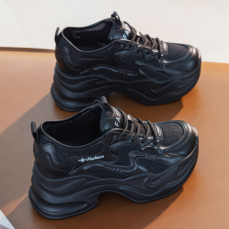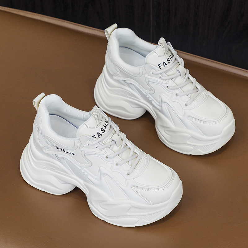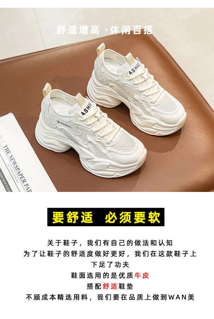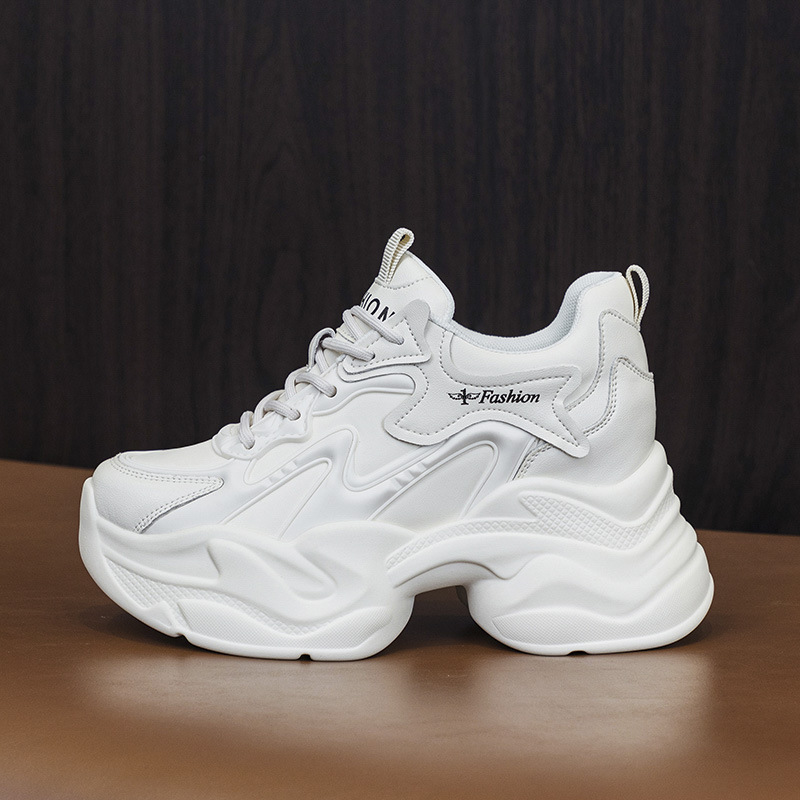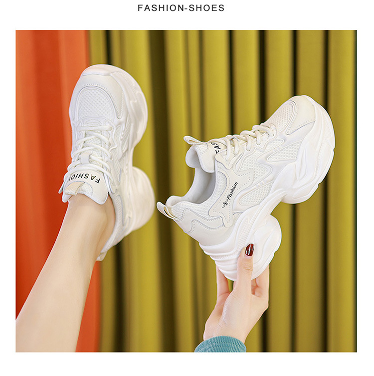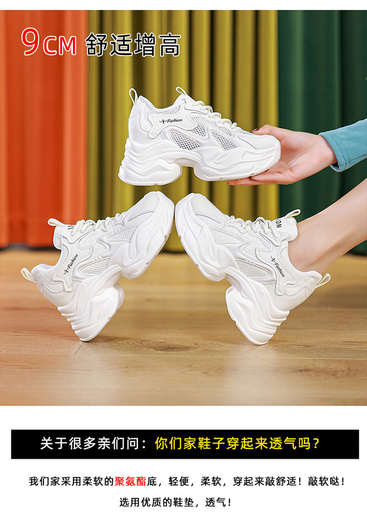 Женские кроссовки на платформе с увеличенной высотой, весна 2025, новый стиль, повседневные, белые, на танкетке, с толстой подошвой, сетчатые, на флисовой подкладке