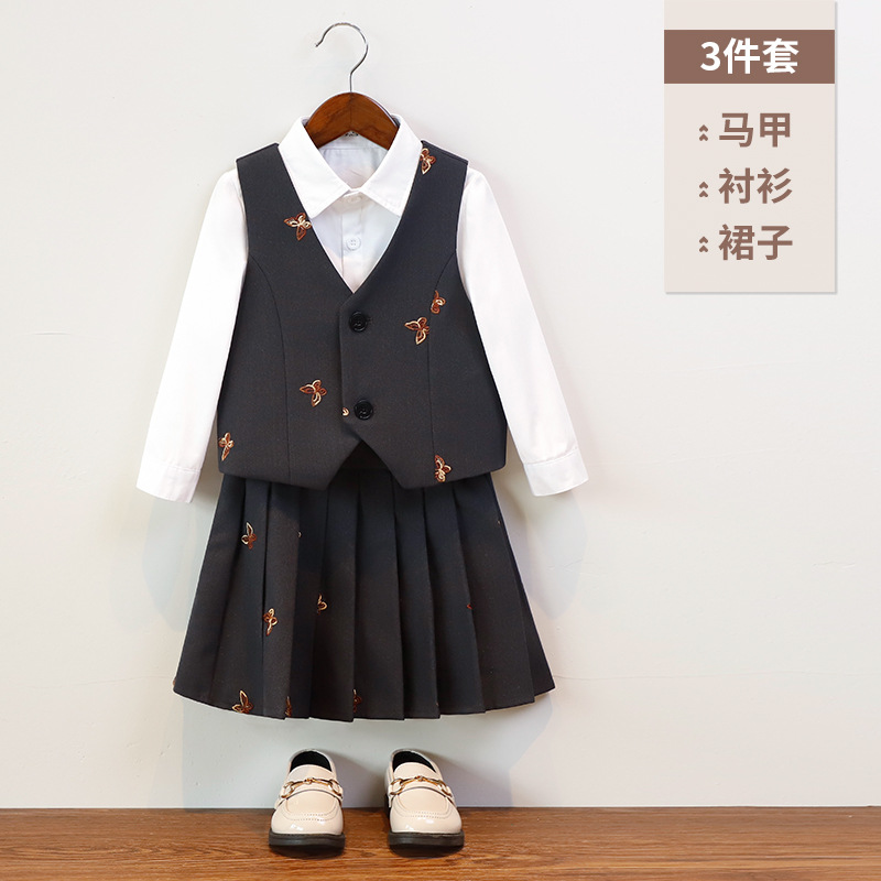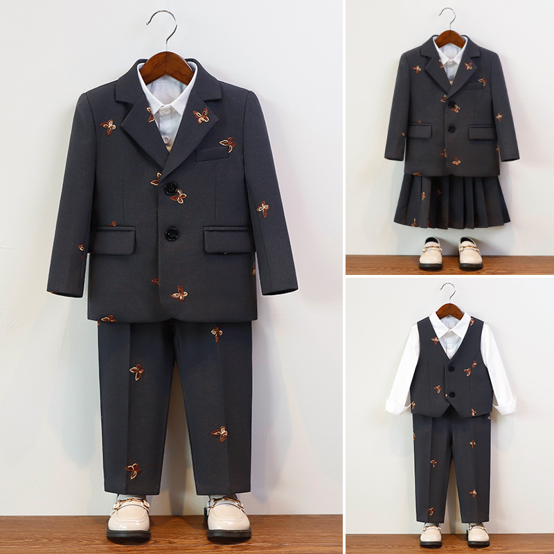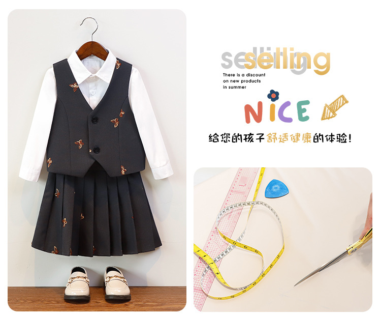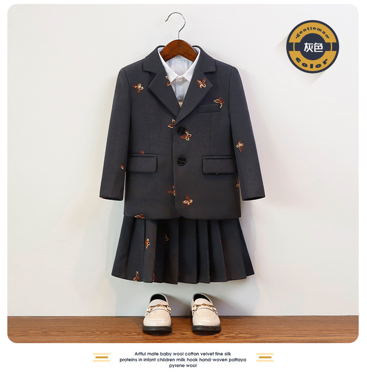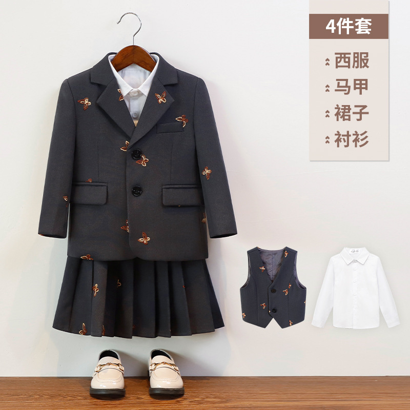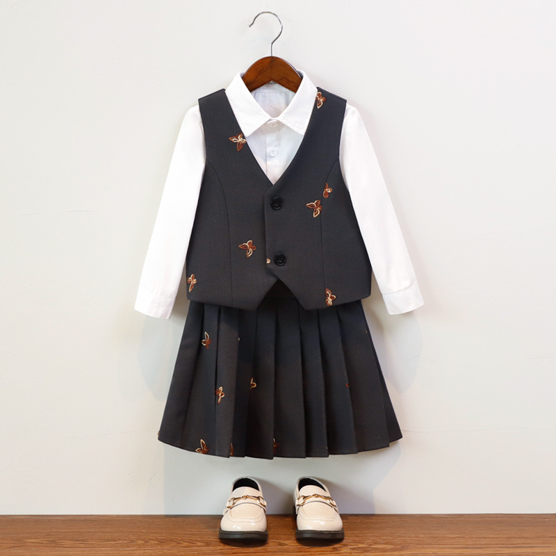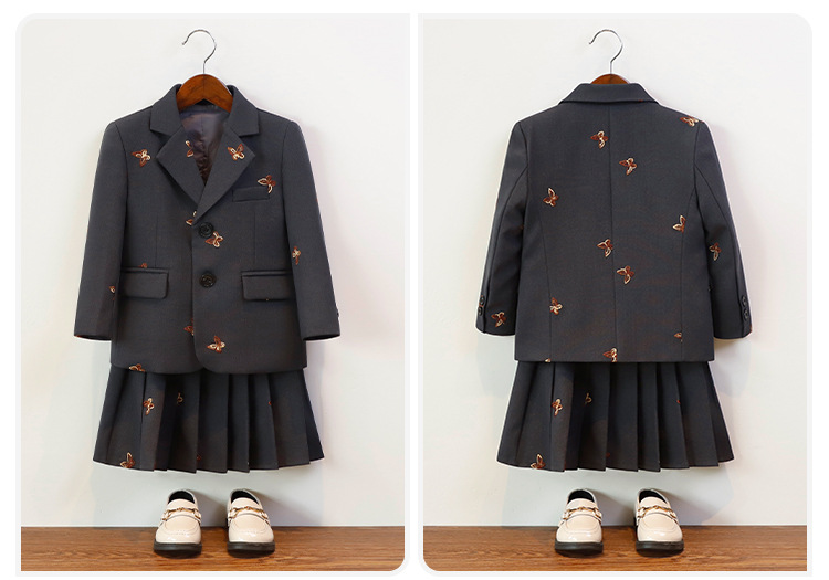 Костюм для мальчиков и девочек осенью и зимой бабочка вышитая школа стиль костюм юбка для детей