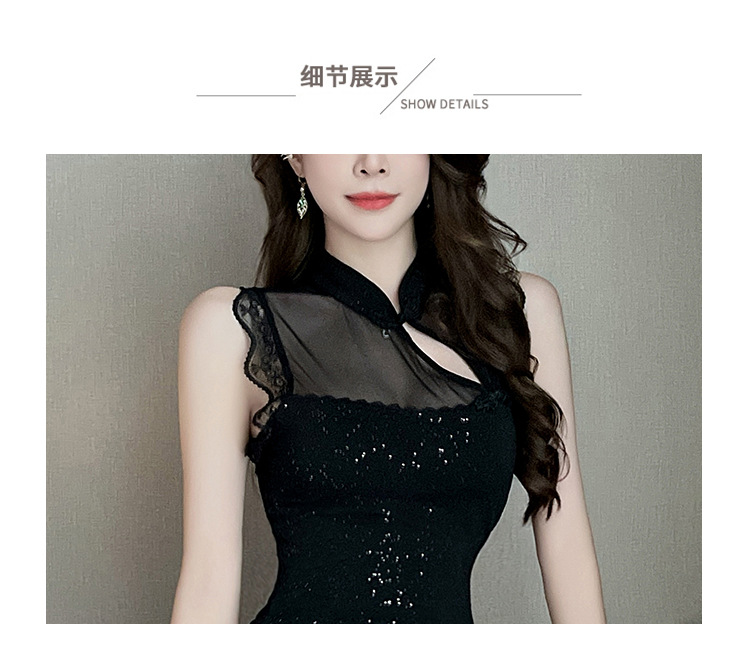 Новая юбка-чонсам в китайском стиле Yu Sister Wind Net пряжа, сшитые кружевные края, стройное платье с открытой вилкой, сауна 1391