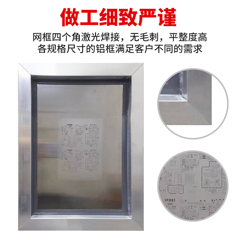 (2)SMT钢网的使用次数,可达到10万次,但不恰当的使用方法,钢网将容易被损坏,影响钢网的精度