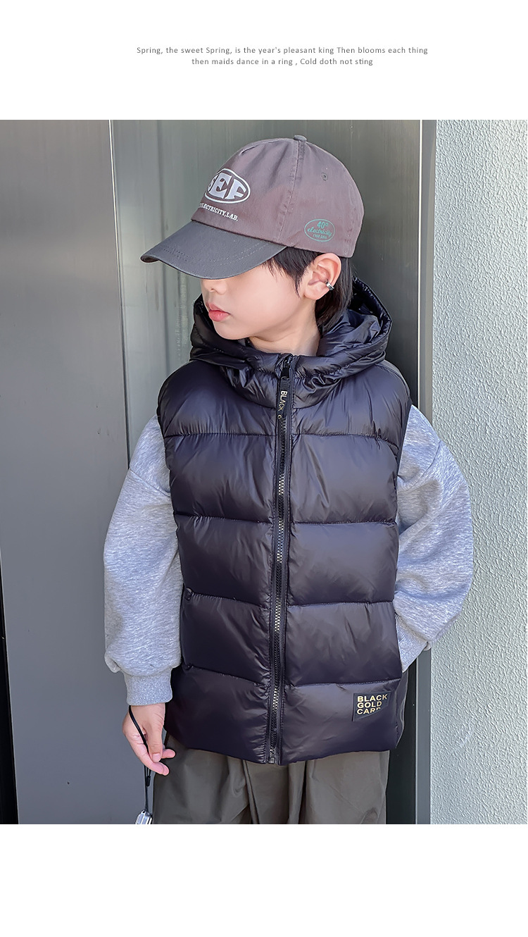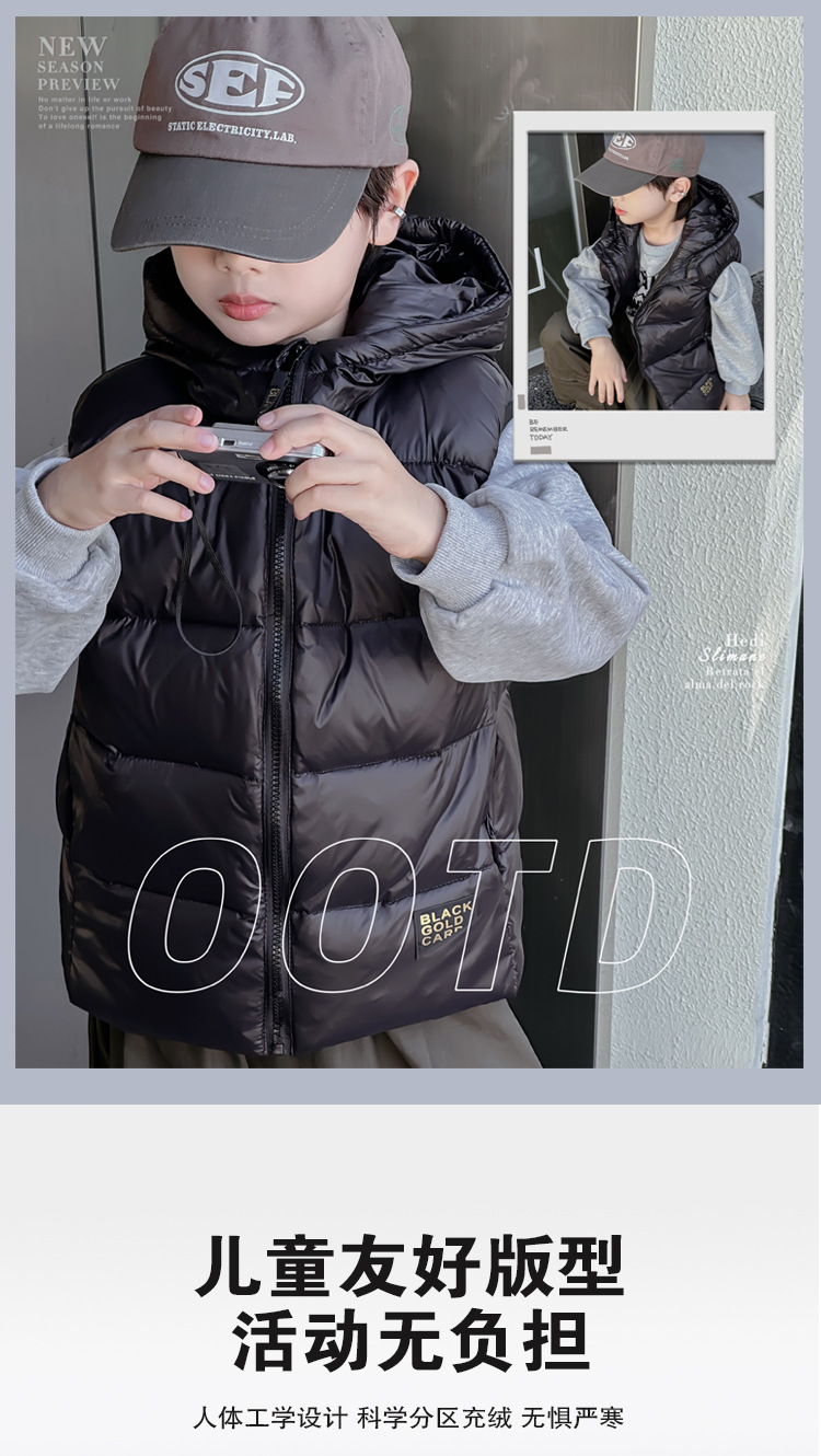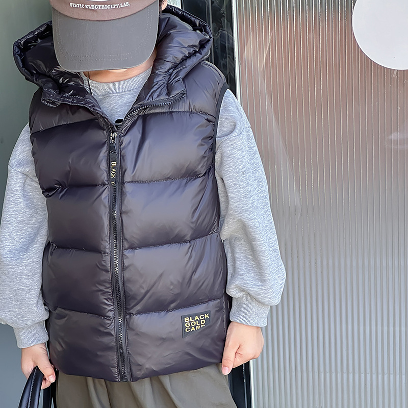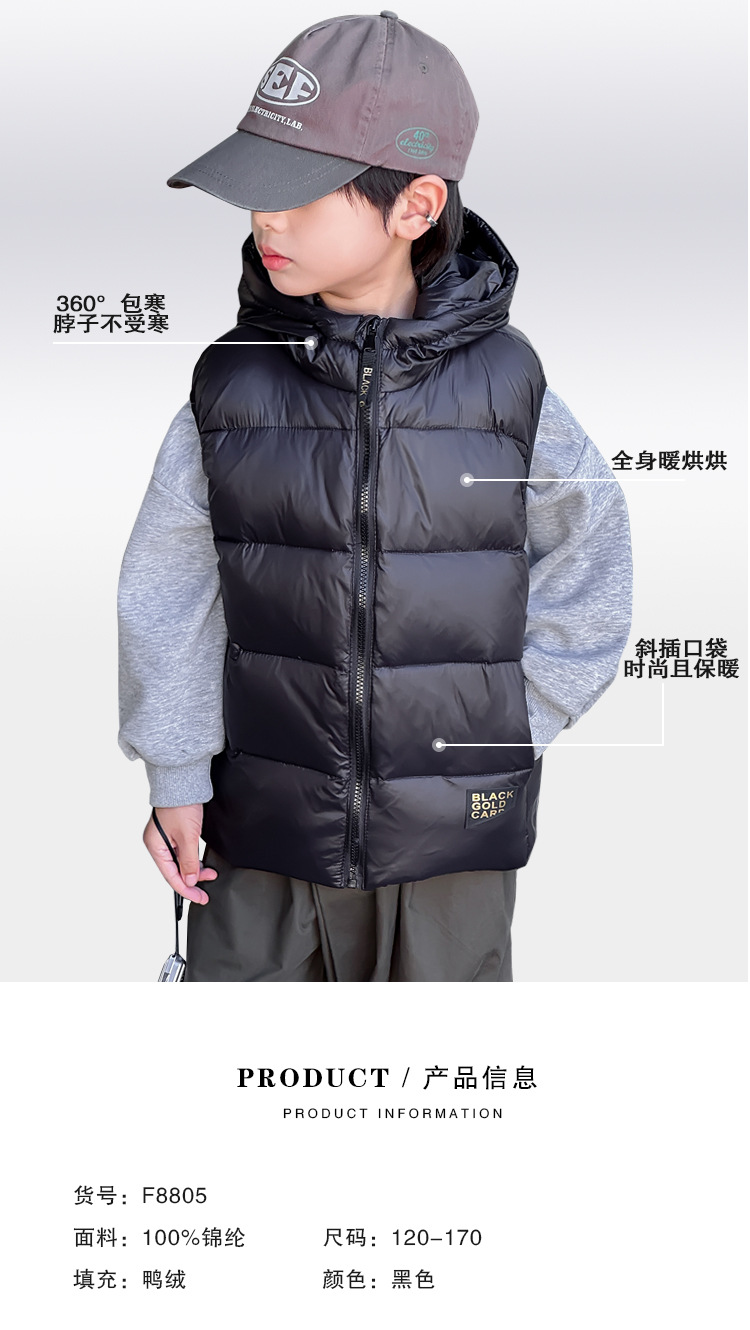 Новая детская пуховая жилетка «Черное золото» (Осень/Зима 2024) – утепленная жилетка из утиного пуха для мальчиков и девочек, для ношения поверх верхней одежды