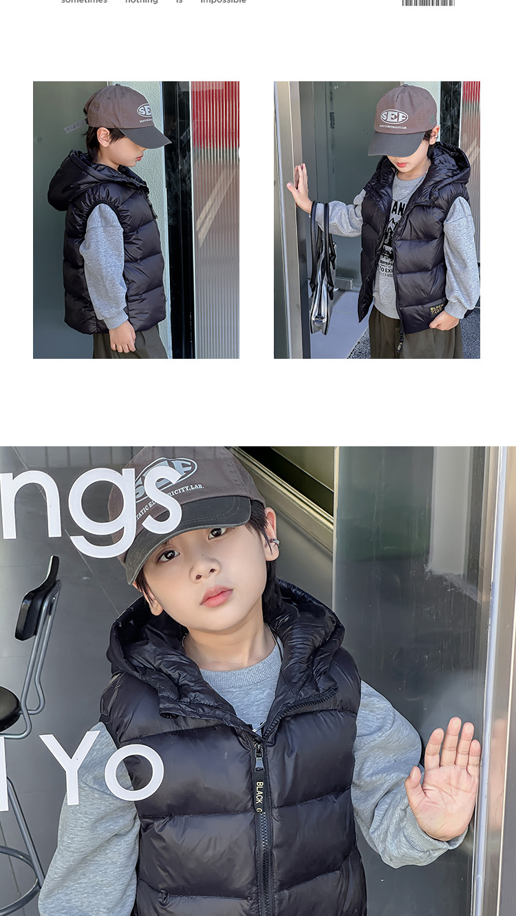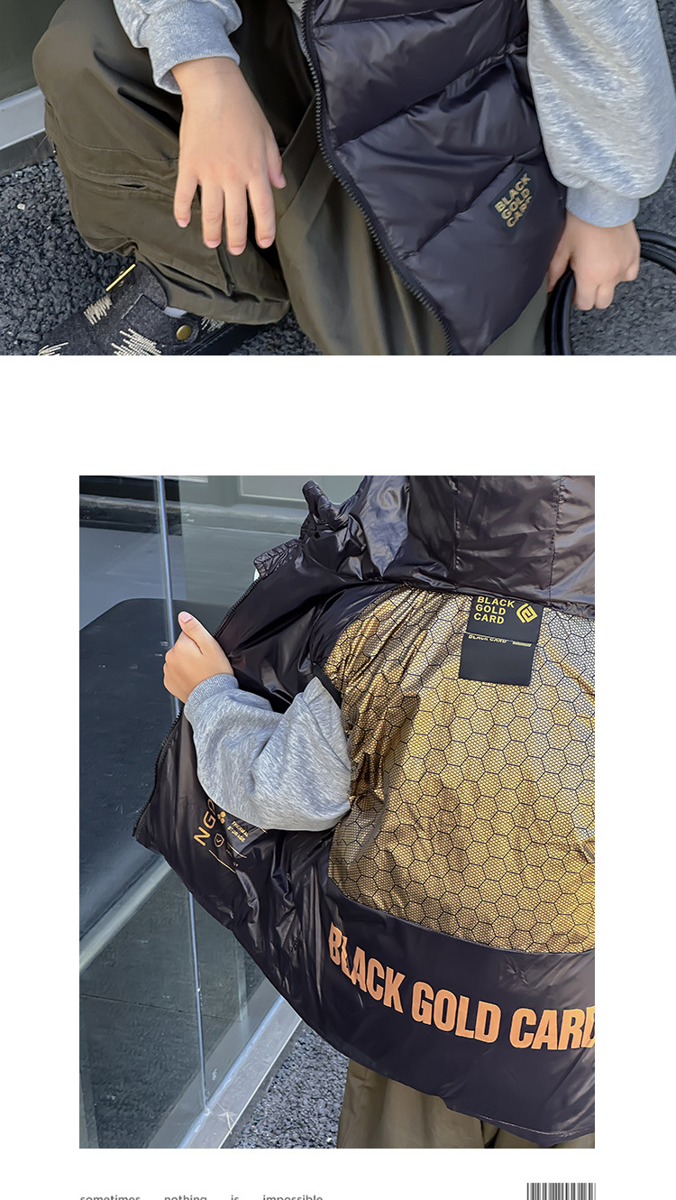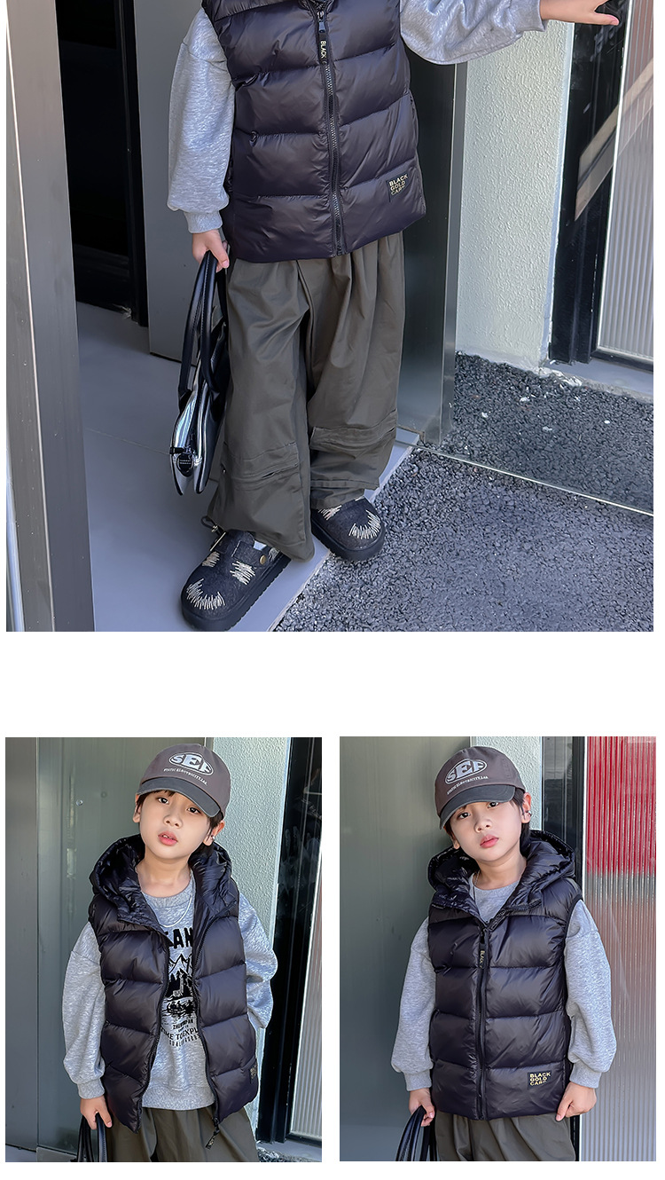 Новая детская пуховая жилетка «Черное золото» (Осень/Зима 2024) – утепленная жилетка из утиного пуха для мальчиков и девочек, для ношения поверх верхней одежды