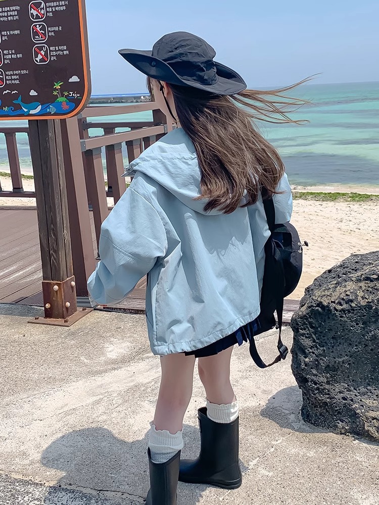 Топы для девочек, весна и осень 2023, новый стиль, детская весенняя одежда, спортивные топы с капюшоном для маленьких девочек, модные