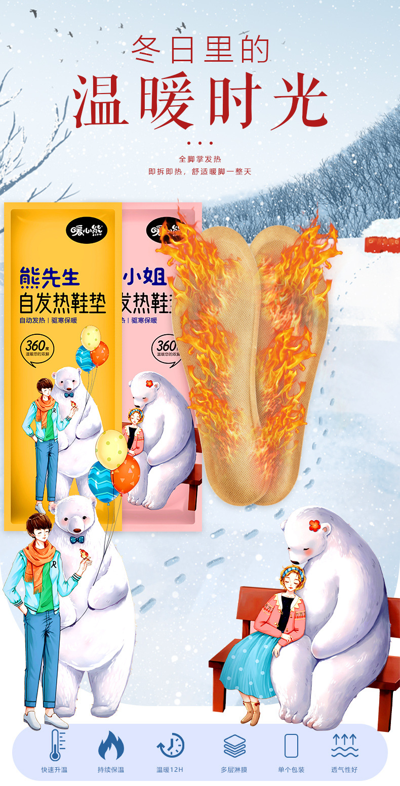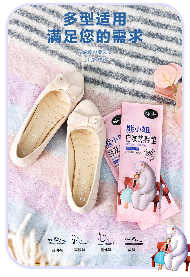 Утепленные стельки с медведем, грелки для ног, грелки для ног, стельки с подогревом при постоянной температуре в течение 8 часов, прямые продажи с фабрики