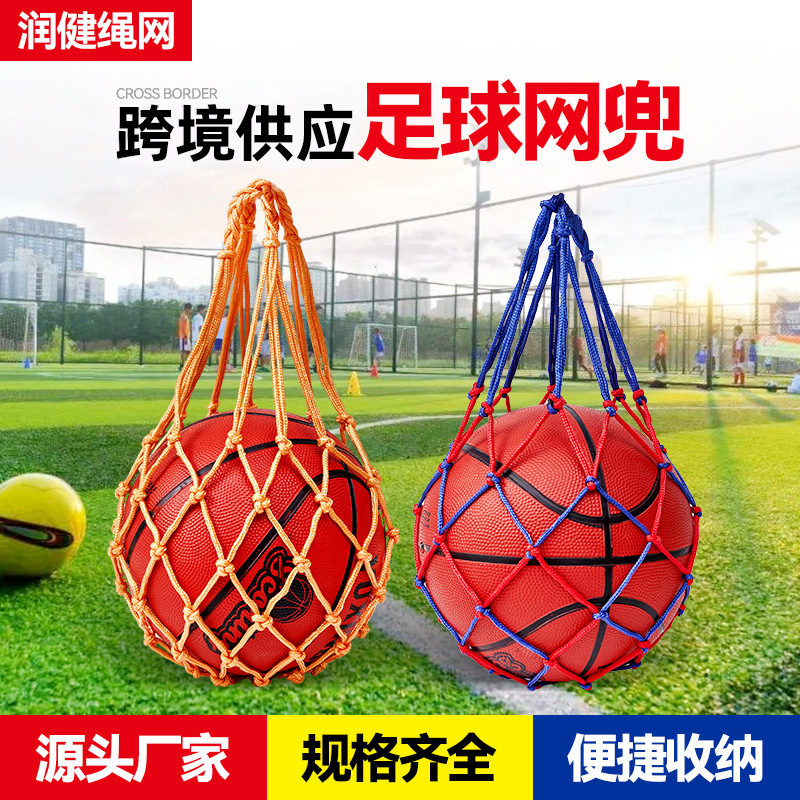 Сумка-сетка для баскетбольного мяча, сетчатый мешок, прямая поставка для трансграничной электронной коммерции, плетеный вручную сетчатый мешок из веревки, прямая поставка от производителя, держатель для одного мяча.