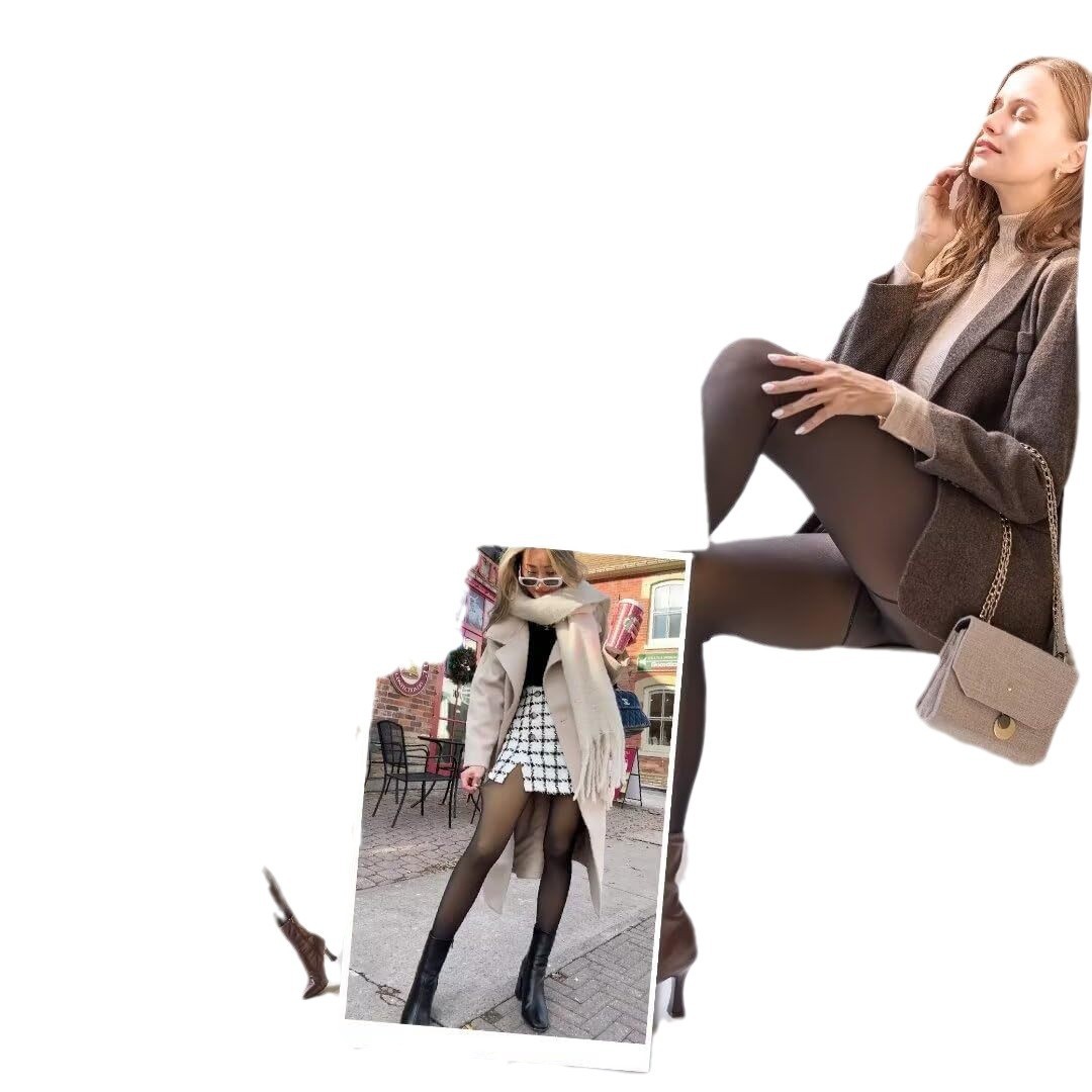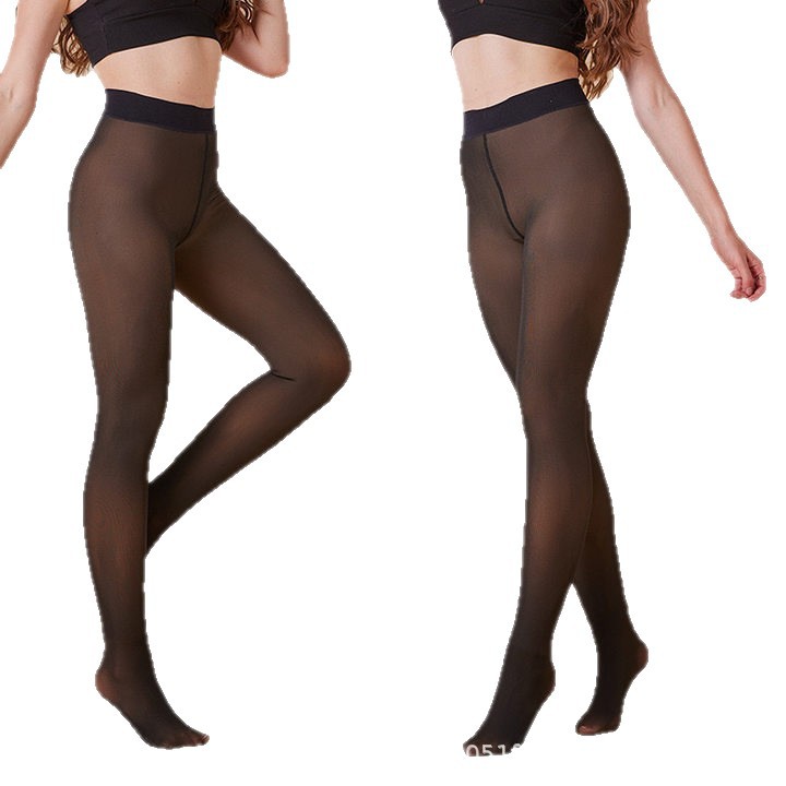 Внешняя торговля Трансграничные леггинсы Легкая нога артефакт Черный Прозрачные леггинсы Женские флисовые колготки Поддельные полупрозрачные