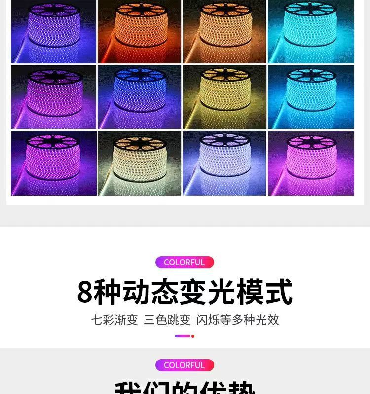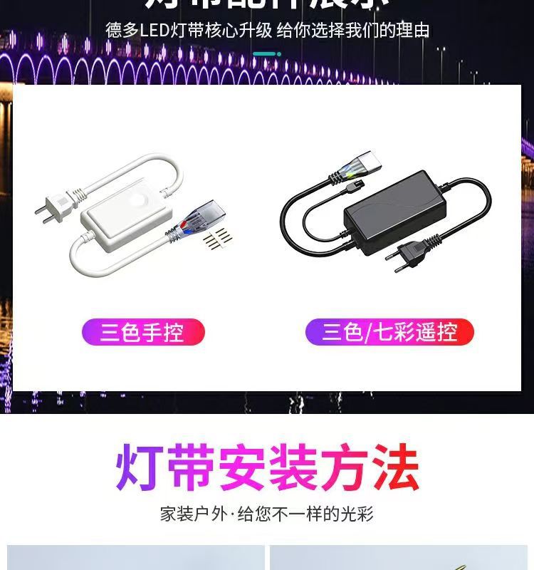 Однорядный RGB [модель дистанционного управления] 60 ламп/220 В высокого напряжения; Двухрядный RGB [модель дистанционного управления] 96 ламп/220 В высокое напряжение; Световая полоса RGB [модель с дистанционным управлением] Специальная вилка 220 В; В упаковке 10 специальных пряжек для уличных световых полос.