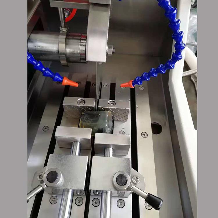 QG-4A多能切割机适用于各种金相试样材料的切割,通过平台的横向移动可调整材料的切割厚薄,再通过主轴的纵向移动来进行试样切割,切割能力强,操作方便;夹具钳口和工作台面等主要零部件均采用不锈钢材料制成,使用寿命长,维护保养方便;切割室采用全封闭式结构,配备限位开关,透明有机玻璃窗口和内置LED照明灯供切割时观察;柜式结构,方便存储各类切割耗材;并配备循环冷却系统,切割后的试样表面光亮、平整,无烧伤,是切割试样的理想设备。