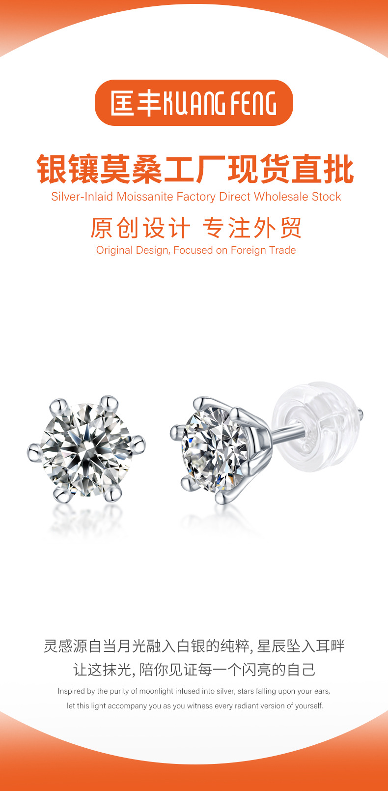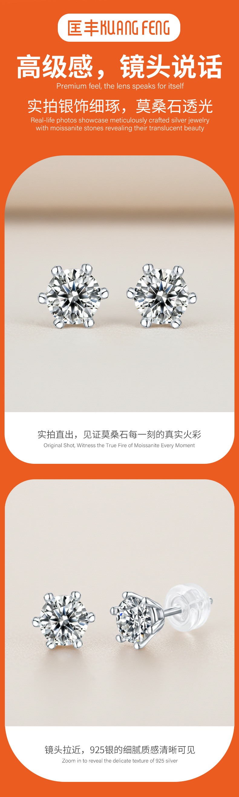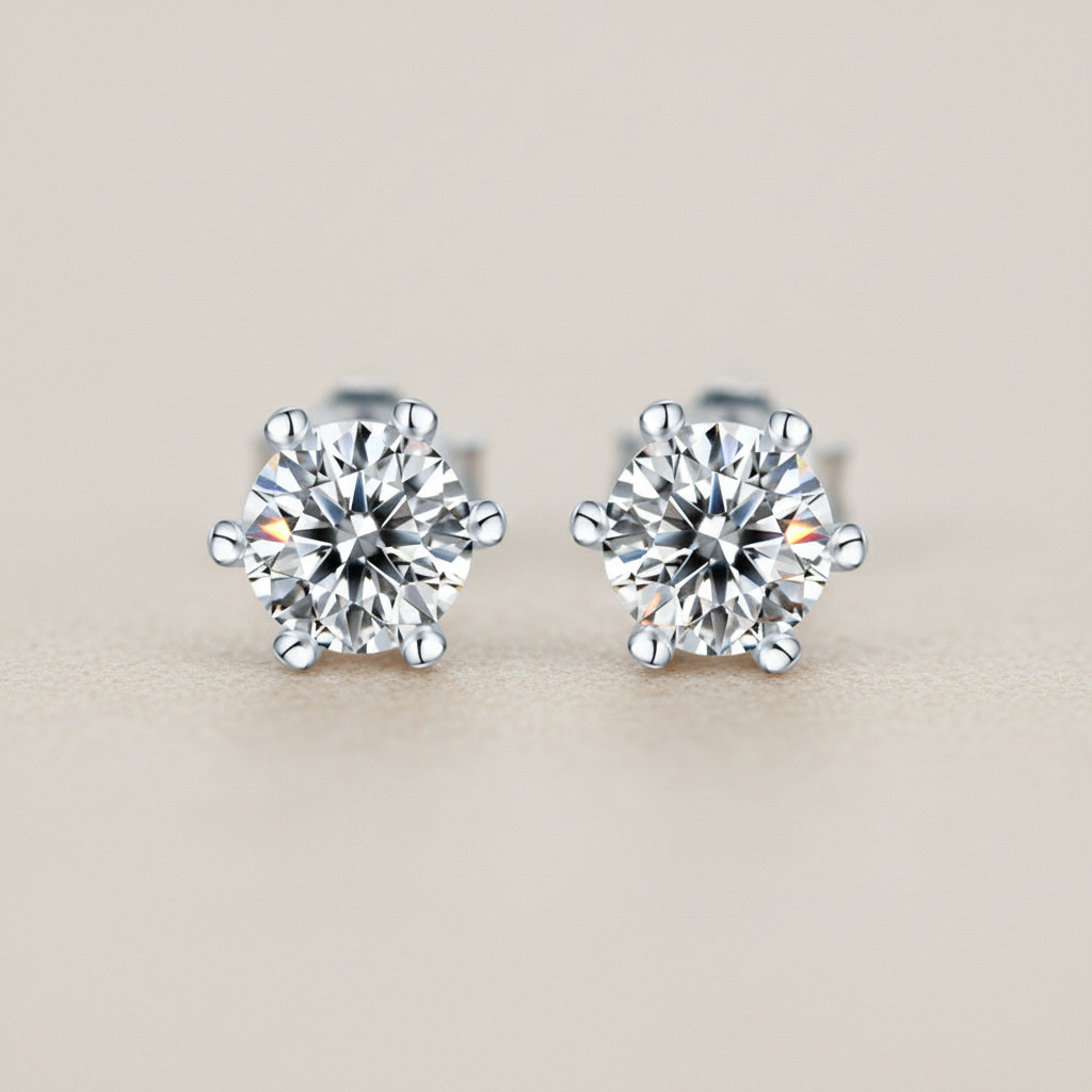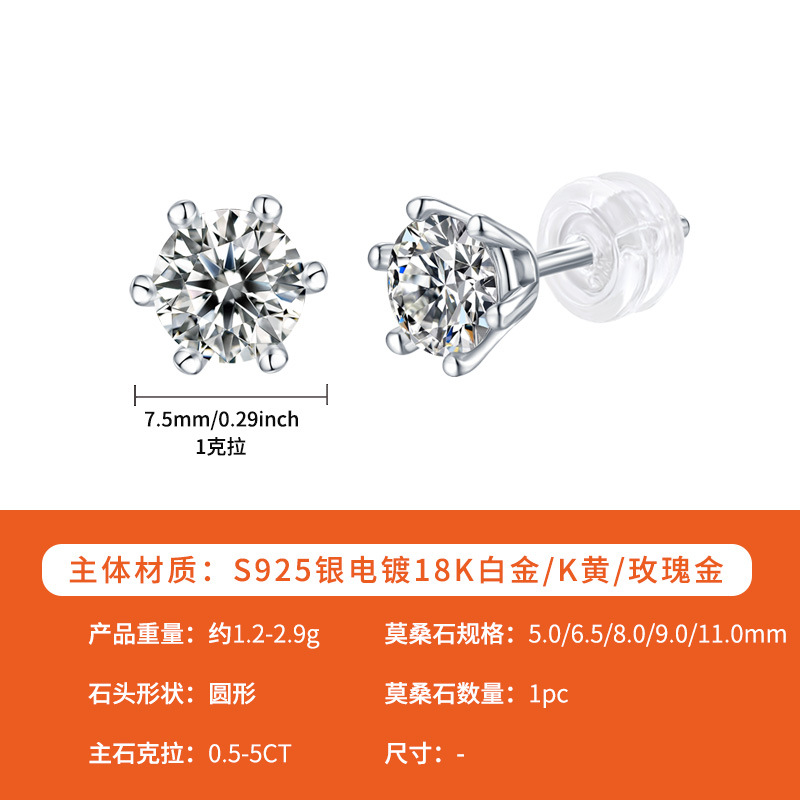 Серьги-гвоздики из серебра 925 пробы (полностью из муассанита) - 1 пара; Серьги-гвоздики из серебра 925 пробы (полный муассанит) - 1 пара + упаковка в ящике + сертификат GRA; Серьги-гвоздики из серебра 925 пробы (полный муассанит) - 1 пара + подарочная коробка с подсветкой + национальный сертификат проверки + сертификат GRA