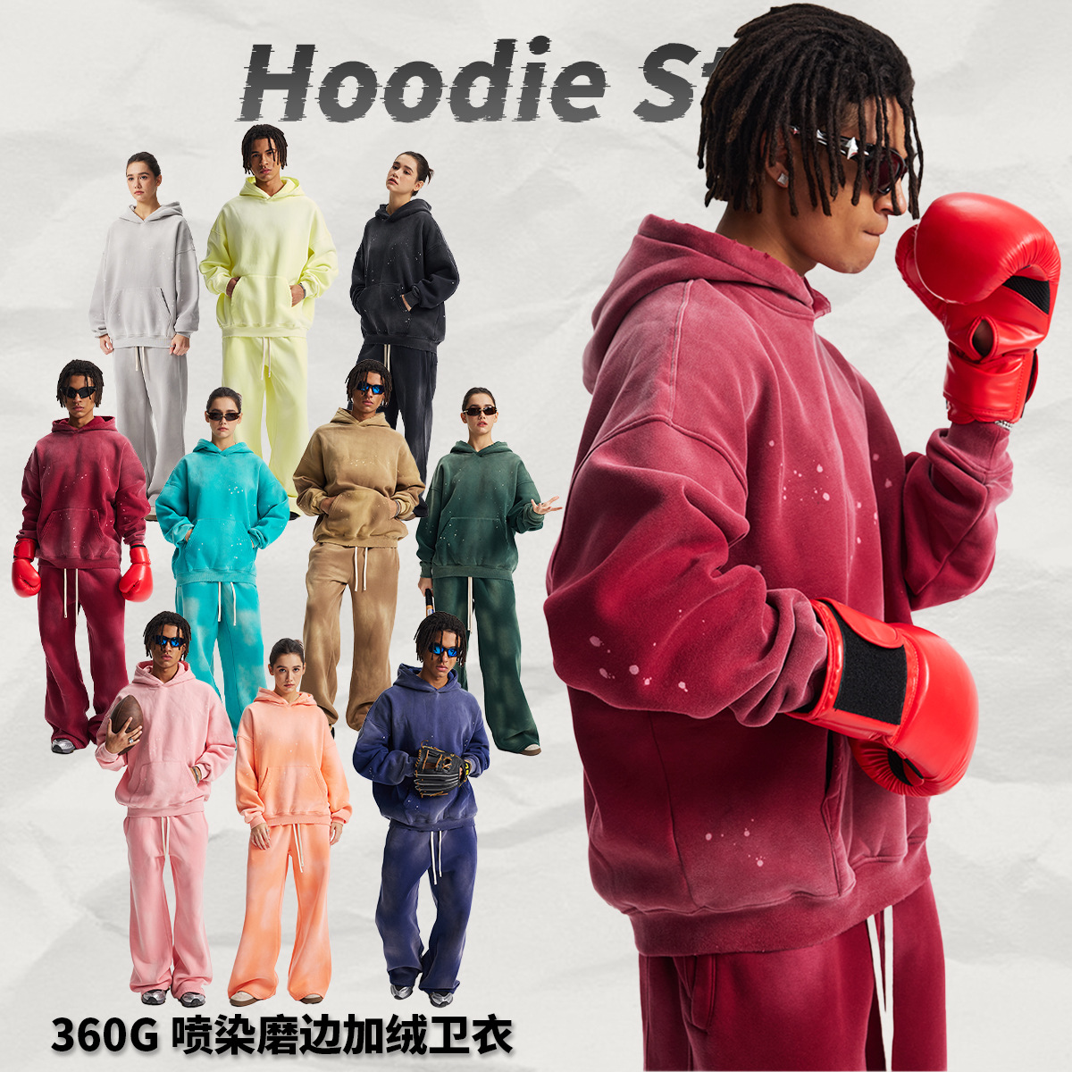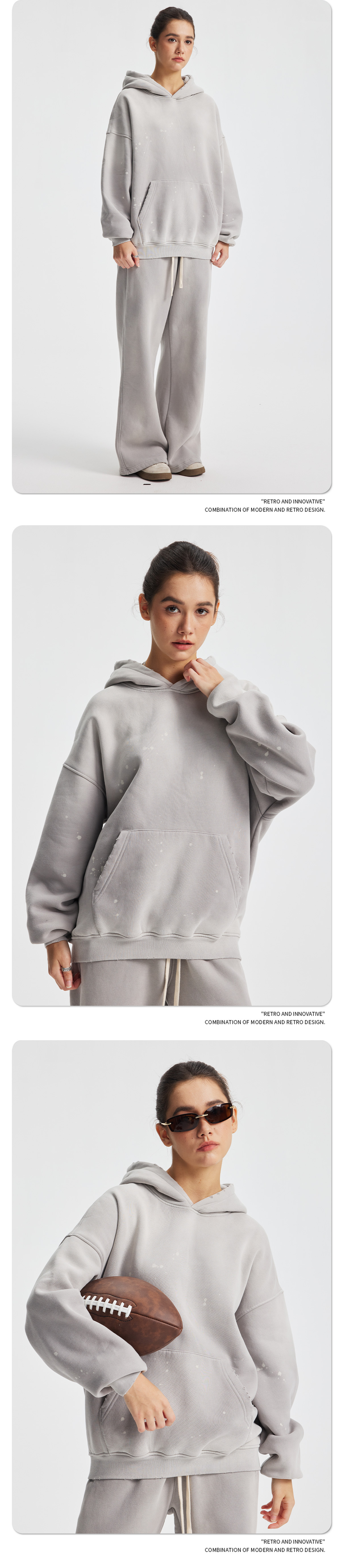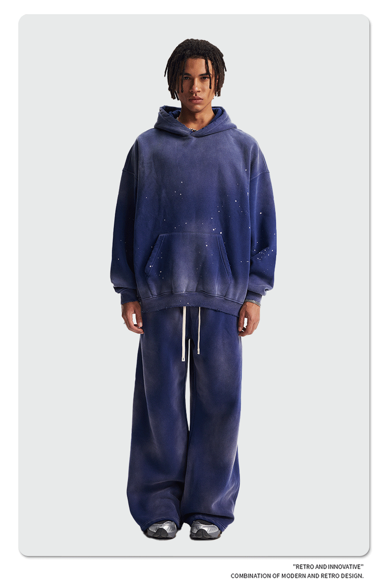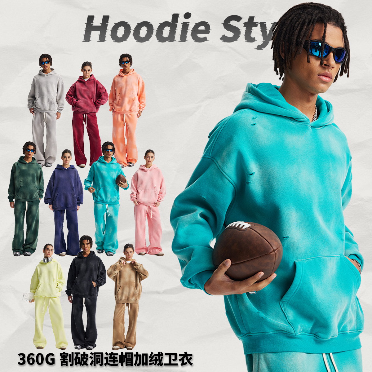 Новый стиль осень-зима 2025: комплект худи и спортивных штанов с эффектом потертостей, бахромой, вырезами и бархатной отделкой, кросс-граничная поставка