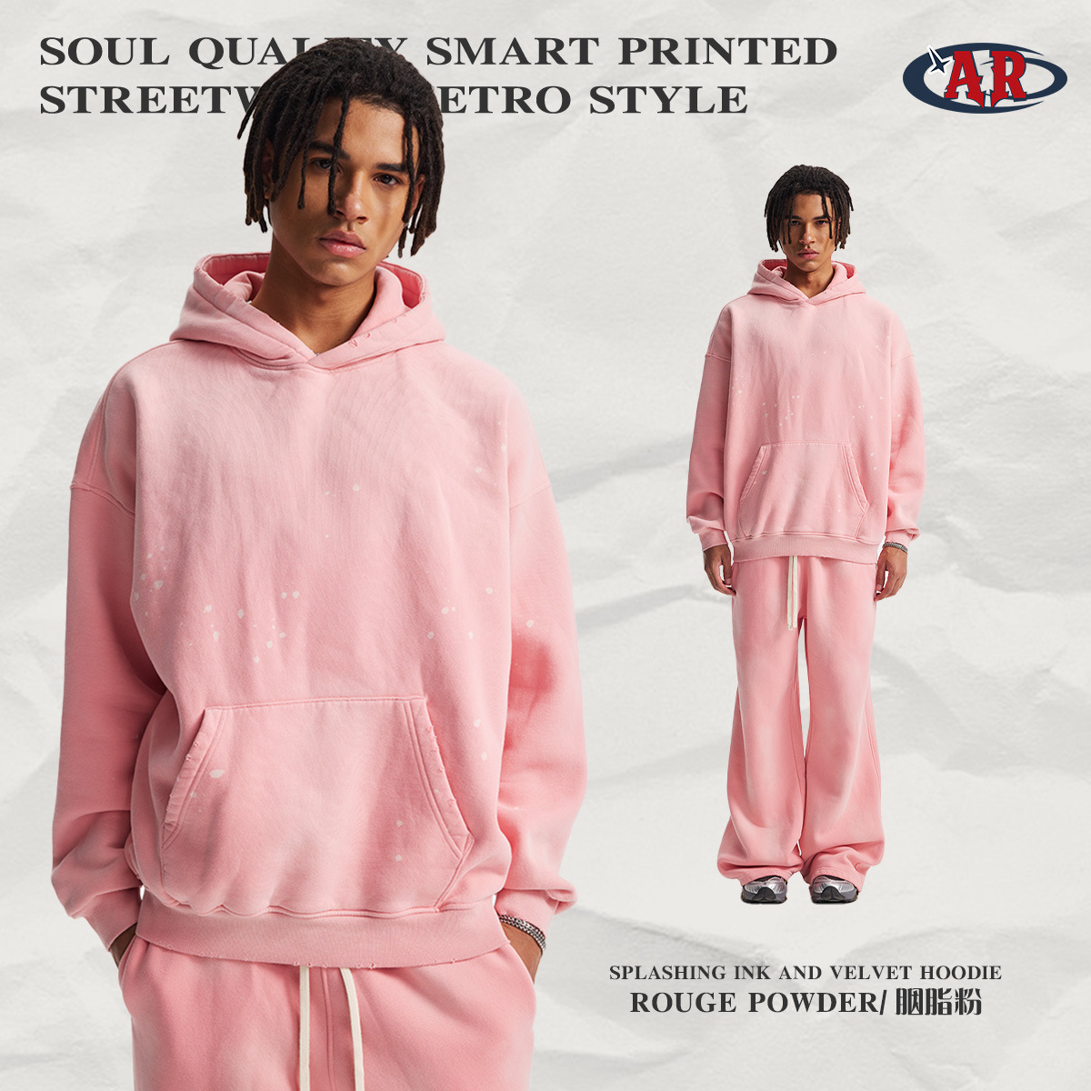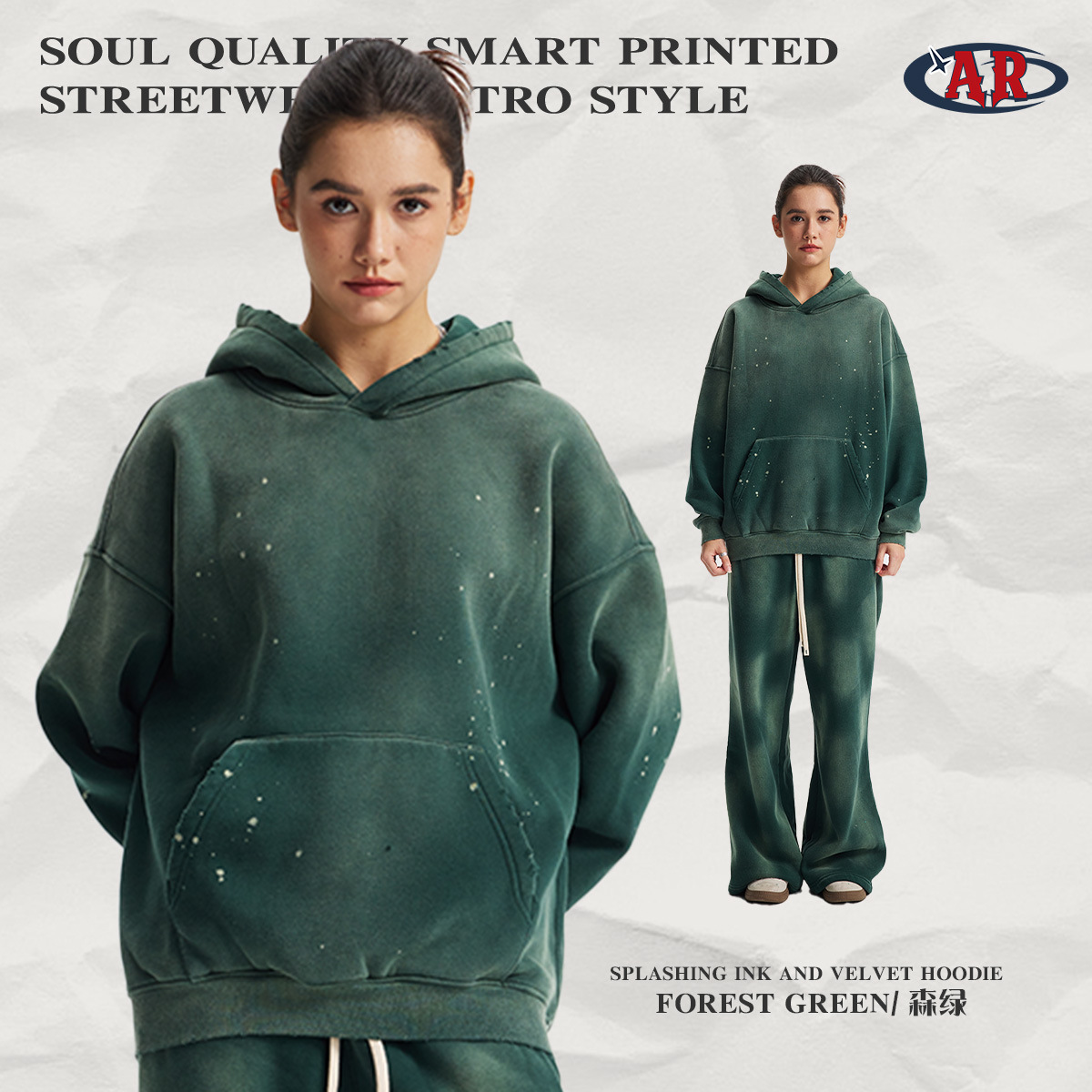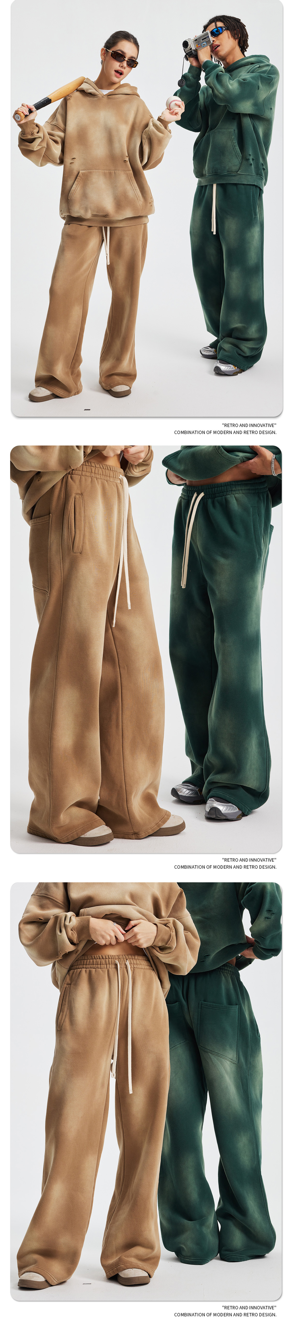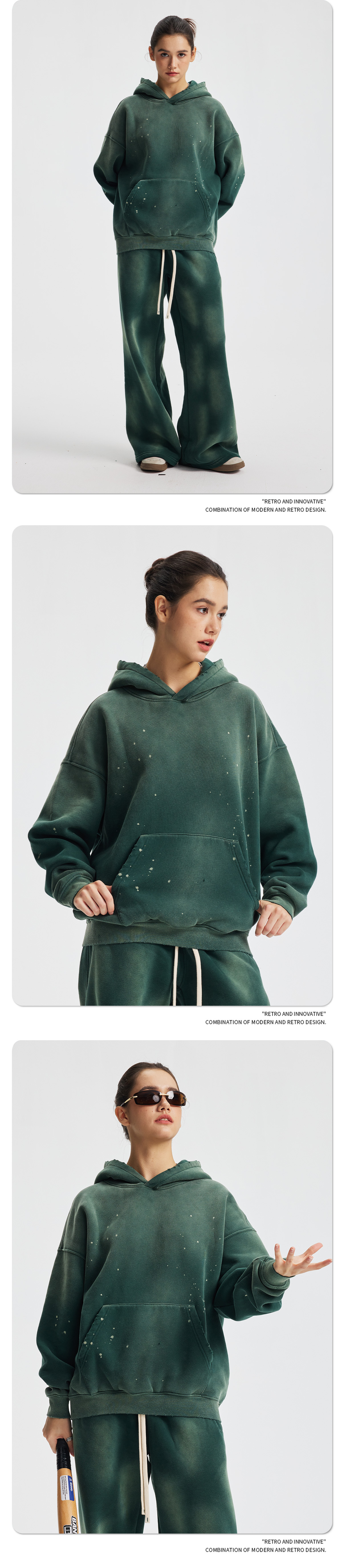 Новый стиль осень-зима 2025: комплект худи и спортивных штанов с эффектом потертостей, бахромой, вырезами и бархатной отделкой, кросс-граничная поставка