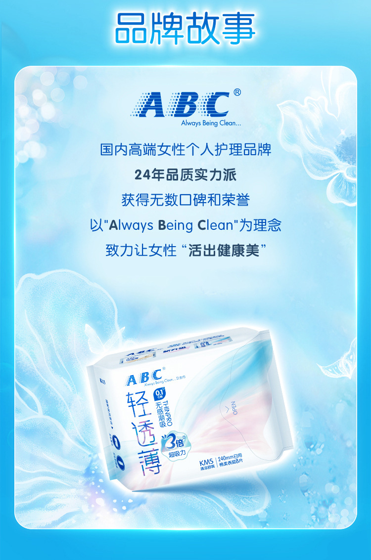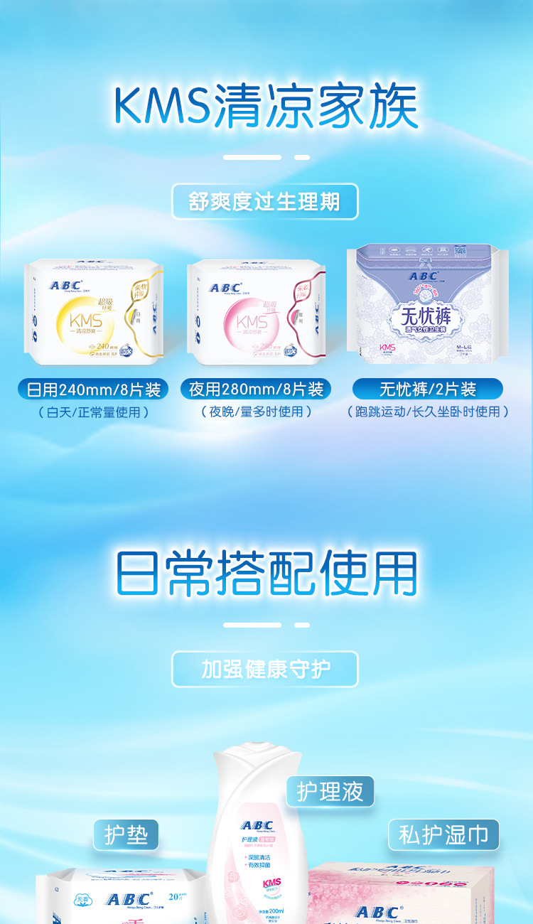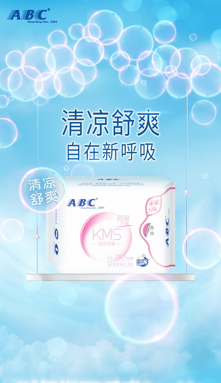 ABC Ночной тонкий хлопчатобумажный поверхностный слой гигиенических салфеток KMS Здоровая формула Ночной 8 таблеток K12