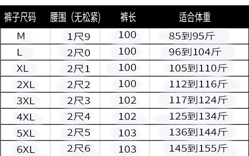 M; L; XL; 2XL; 3XL; 4XL; 5XL; 6XL