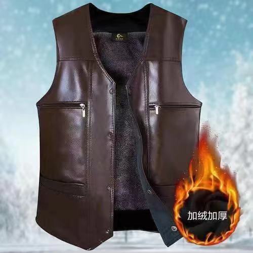Кожаный жилет для мужчин на осень и зиму, теплый повседневный жилет для людей среднего и пожилого возраста, флисовый жилет с защитой от холода для пожилых людей, жилет-куртка для папы.
