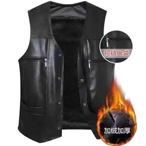 Кожаный жилет [бархатный и утолщенный] черный; Кожаный жилет [бархатный и утолщенный] коричневый; Хлопковый жилет [бархатный и утолщенный] черный