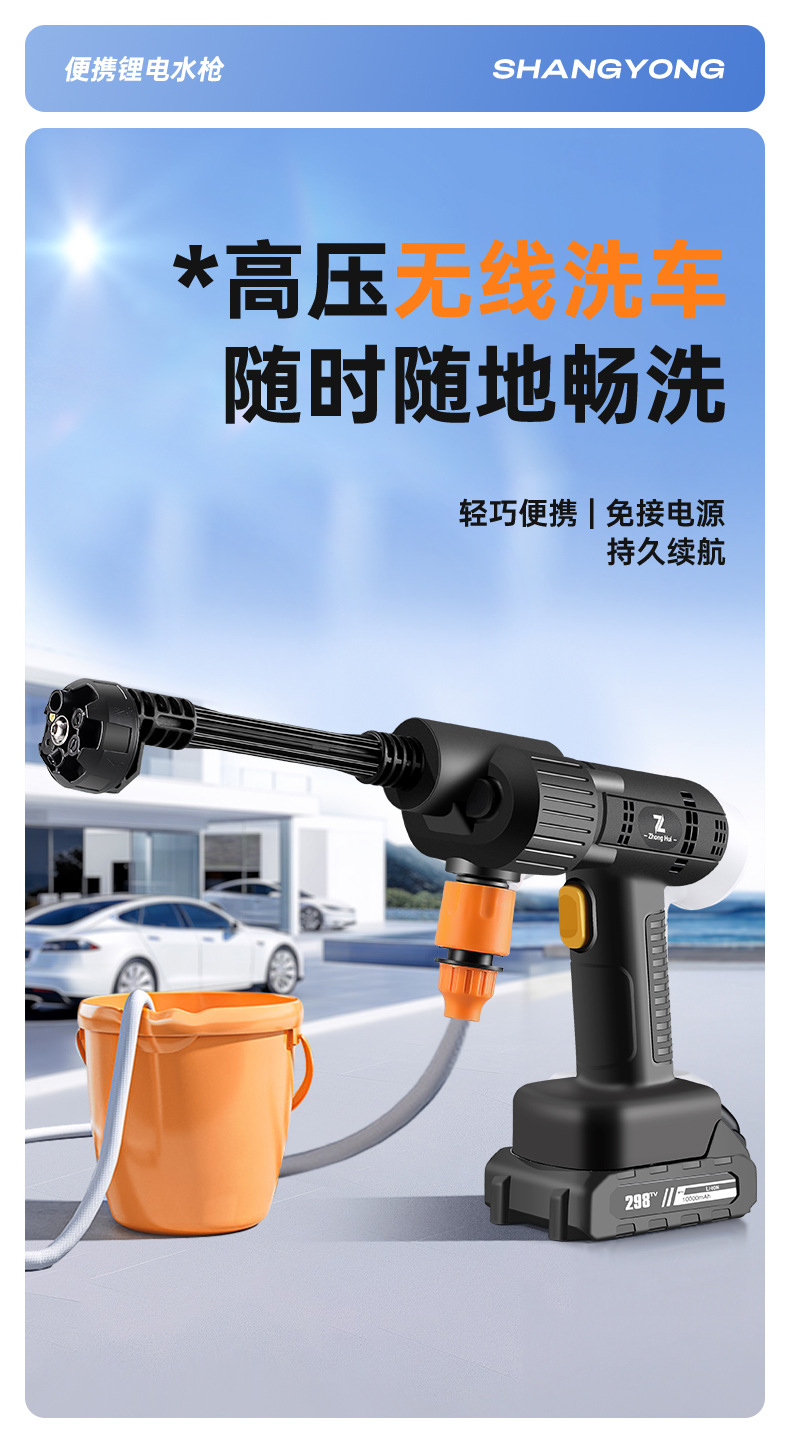 Беспроводной высоконапорный водяной пистолет, новая модель для мойки автомобилей, многофункциональный портативный пистолет для полива цветов и бытового использования.
