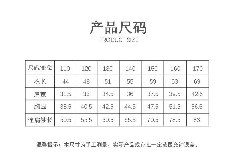 110cm; 120cm; 130cm; 140cm; 150cm; 160cm; 170cm