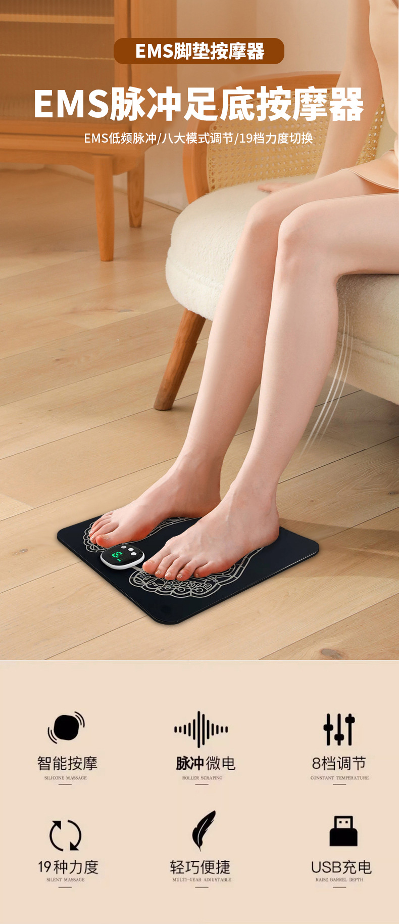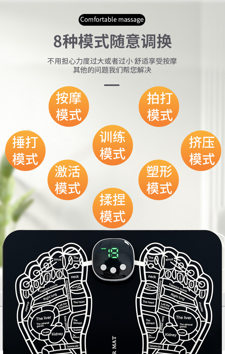 Трансграничный импульсный EMS подошвенный массажер микротока автоматический массажный коврик для ног для зарядки дома умный нажатие ног