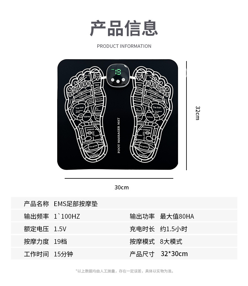 脚垫尺寸:32CM*29CM*2.5MM