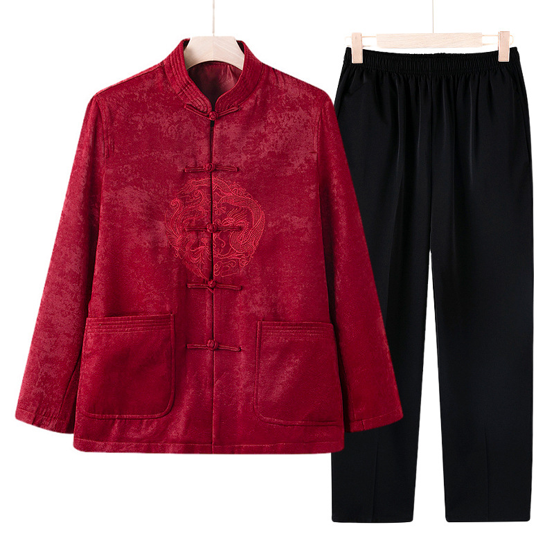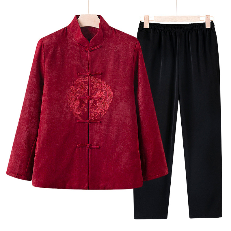 Пара костюмов Тан пожилой пожилой мамы и папы платья для пожилых людей день рождения одежда бабушка дедушка пальто