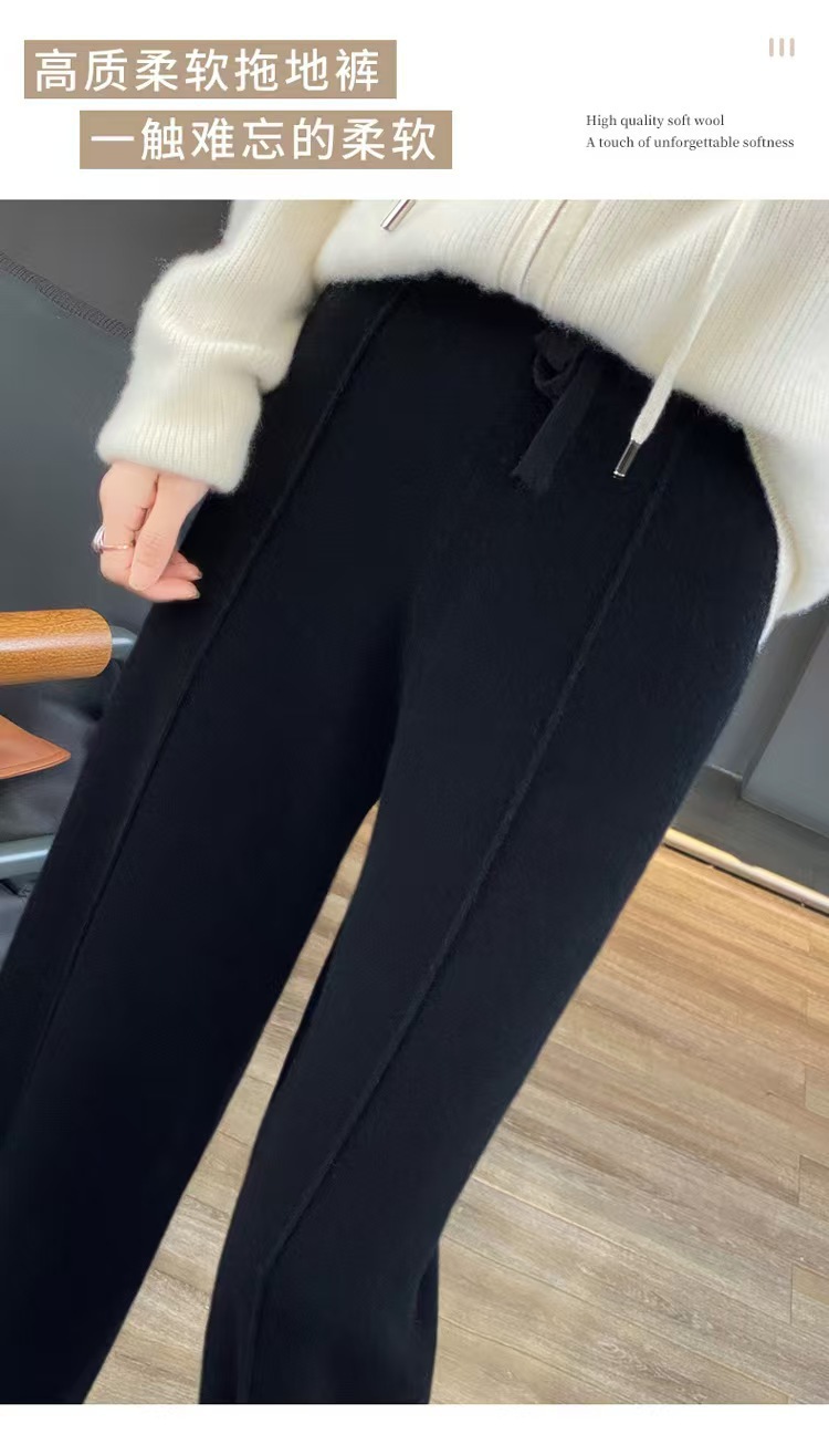 Новые шерстяные средние шитые широкие брюки с высокой талией, женские повседневные штаны, перетаскивающие штаны, прямые тонкие женские штаны, дикие трикотажные штаны