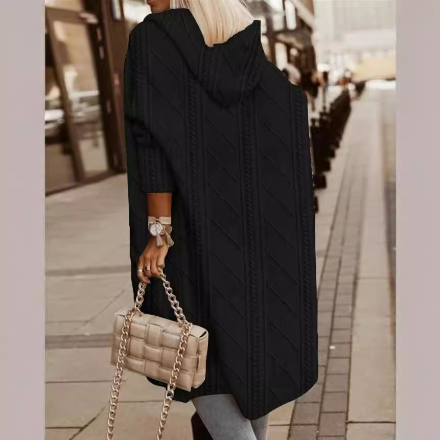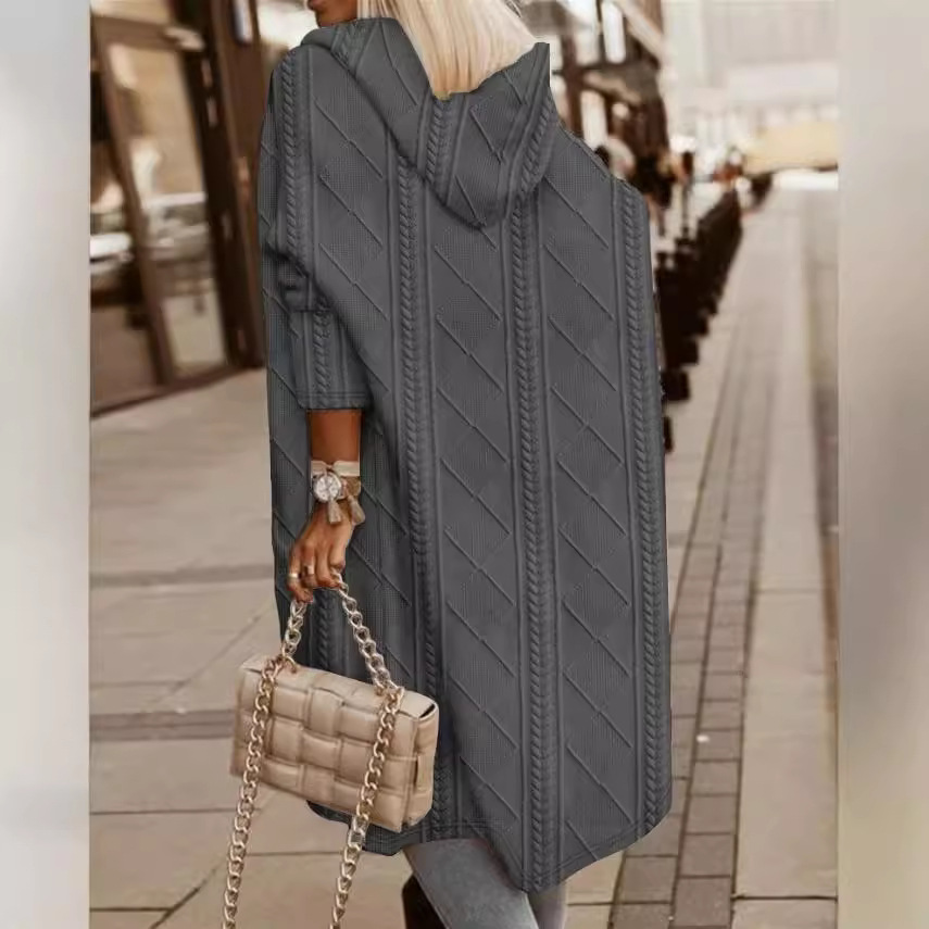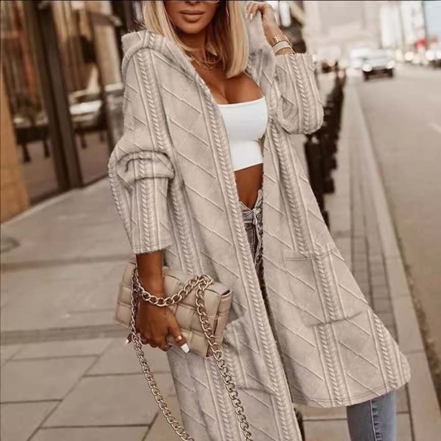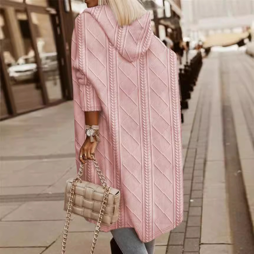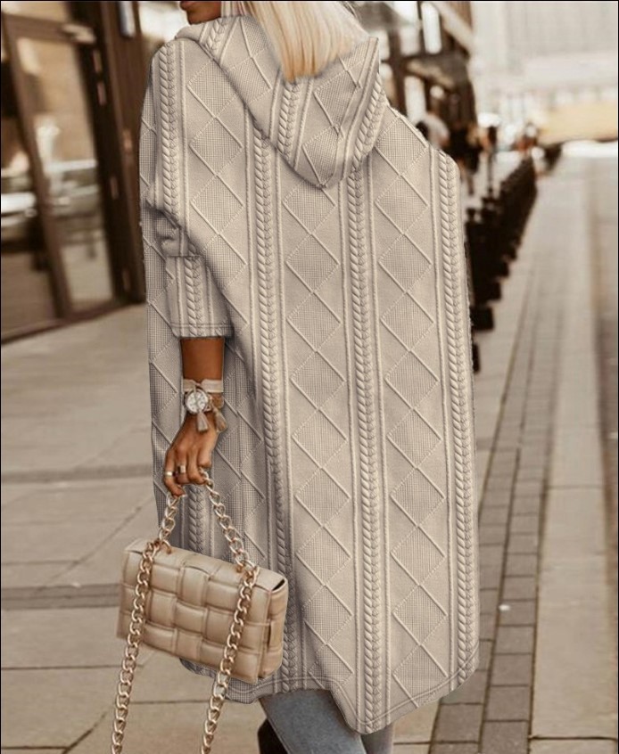 2024 осень и зима новый женский пальто Европа и США амазонка с цветочной текстурой с капюшоном карманы с длинными рукавами длинный плащ женский плащ