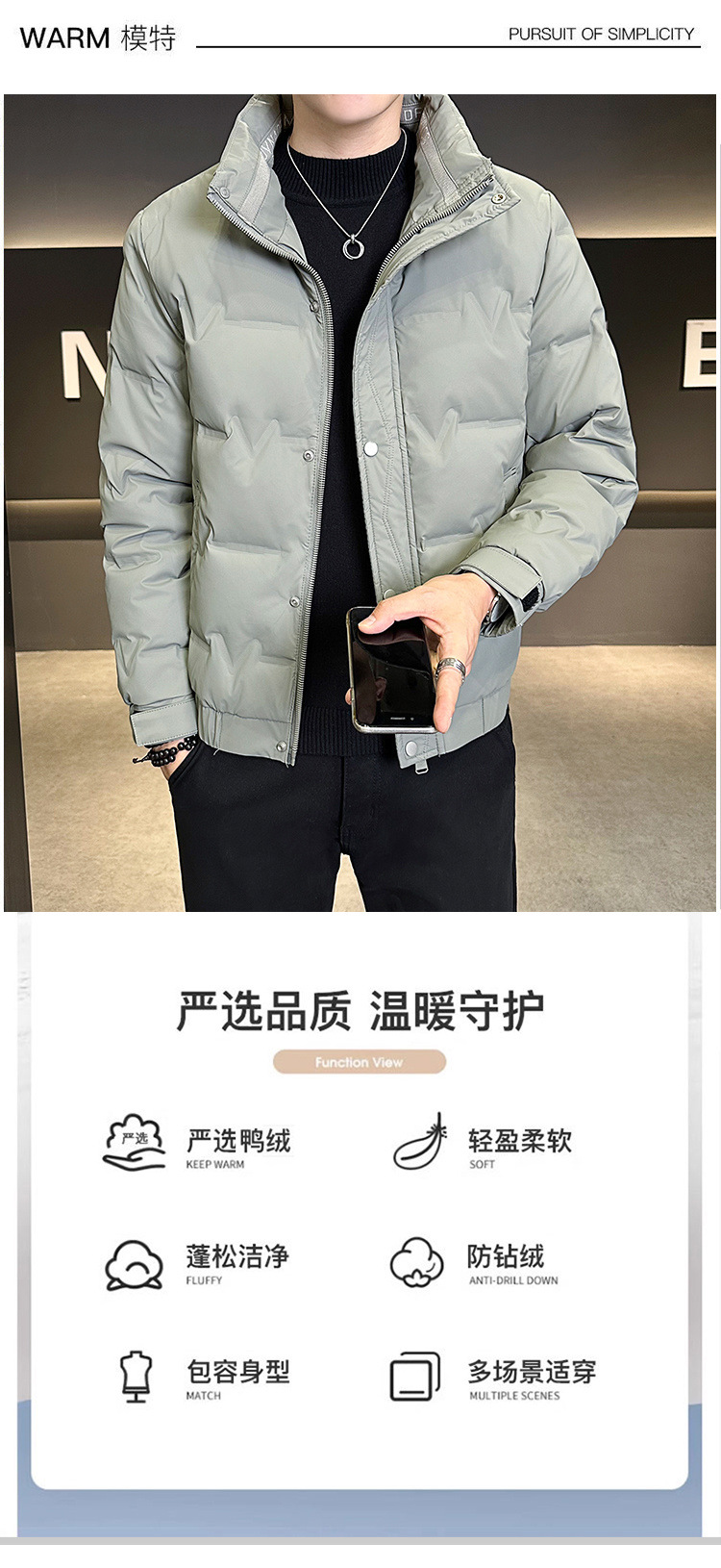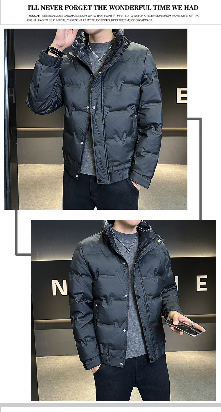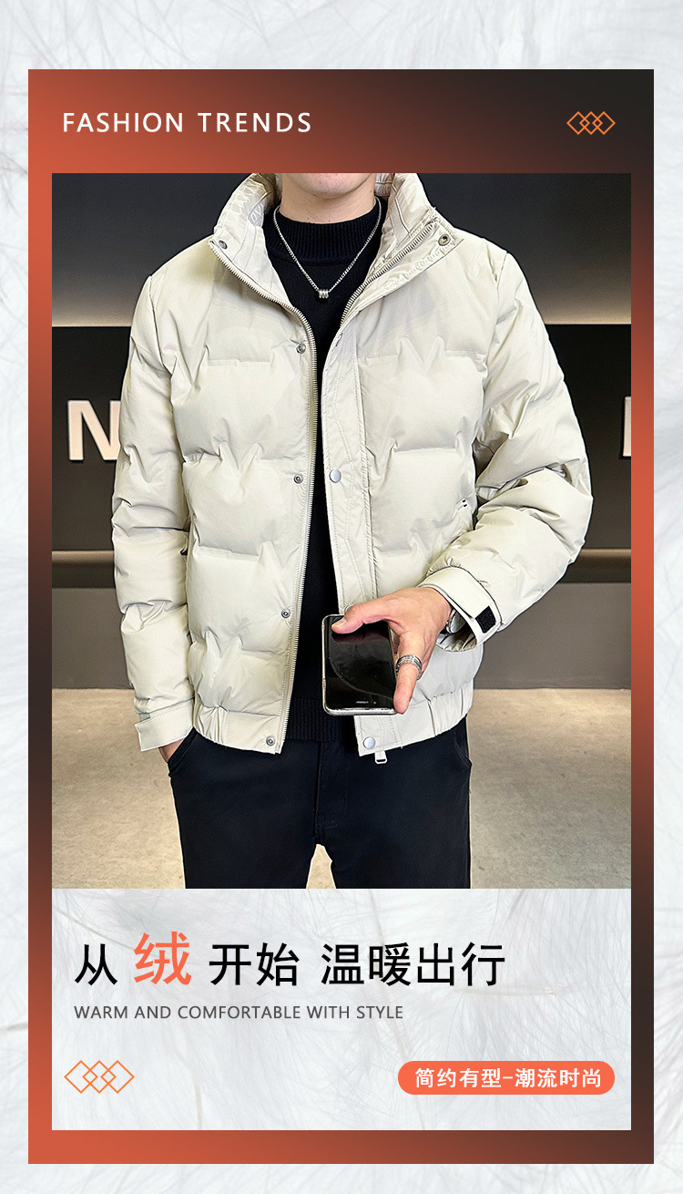 Тонкий пуховик мужской 2024 новый зимний тренд дикий тонкий мужской пиджак теплый воротник короткий зимний костюм
