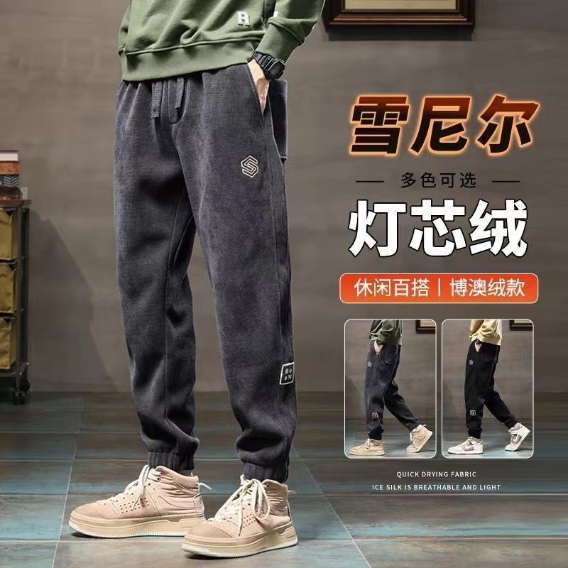 2024 новые брюки плюс бархатные толстые повседневные брюки мужские вельветы мужские осенние и зимние теплые спортивные длинные брюки