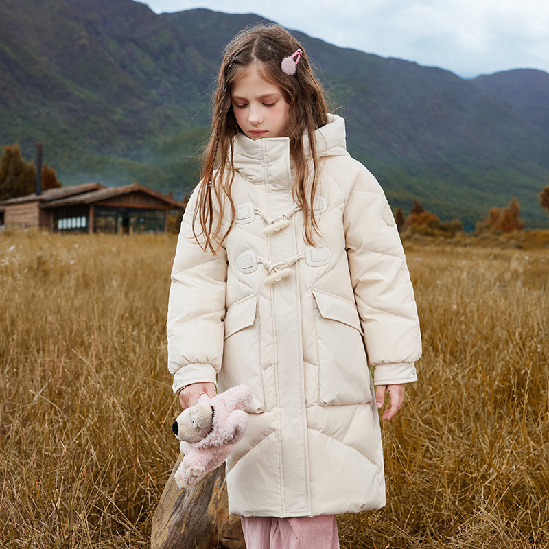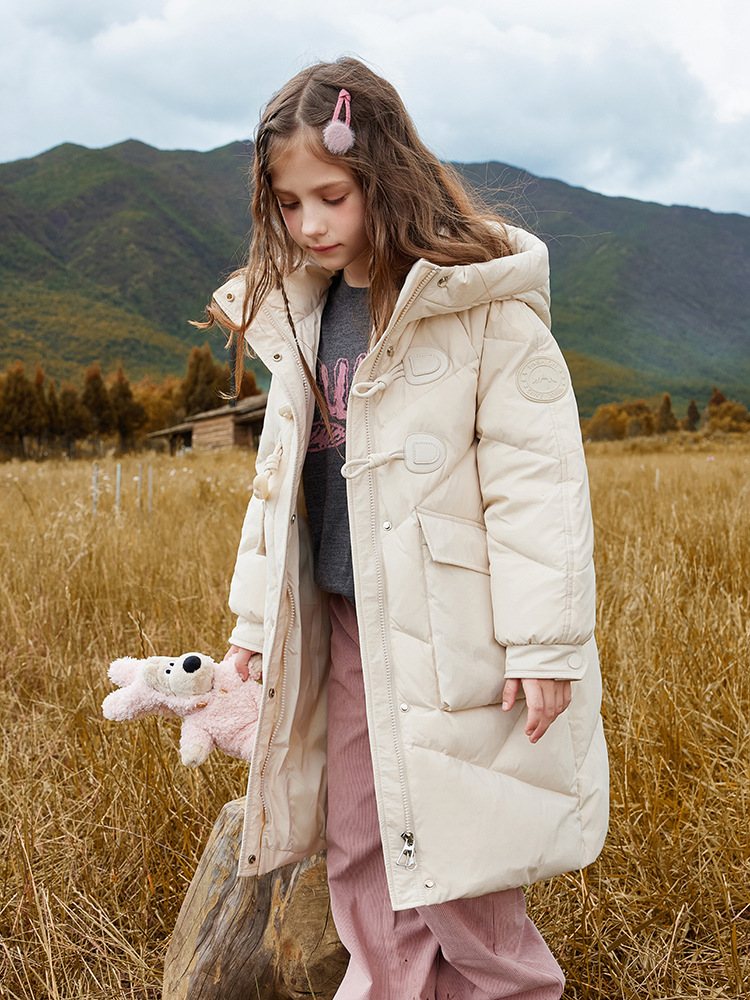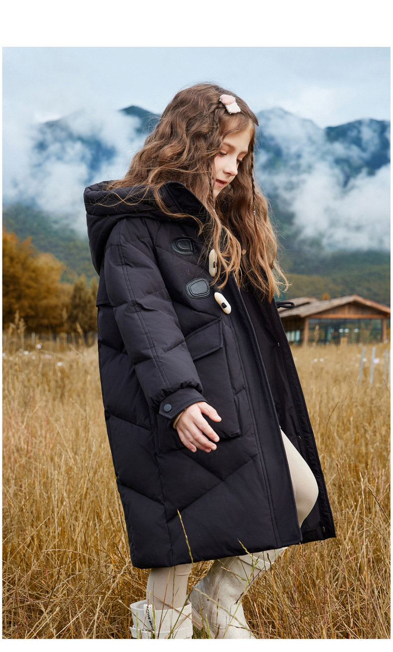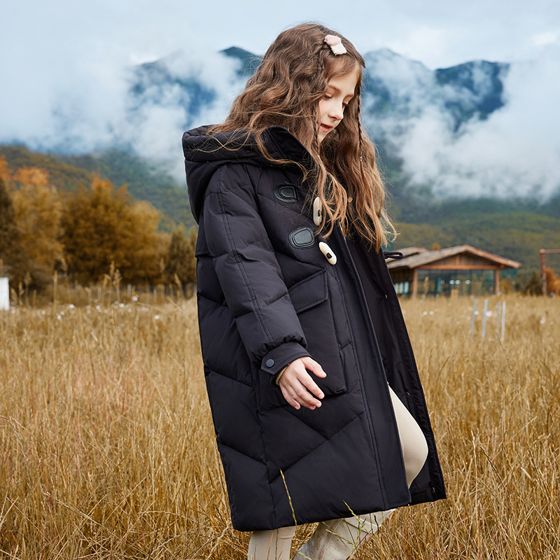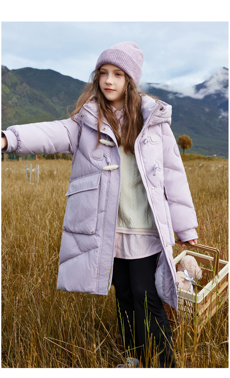 Детская пуховая куртка для девочек, средней длины, новая зимняя модель 2025 года, стильный корейский фасон, утепленное пальто для девочек постарше.