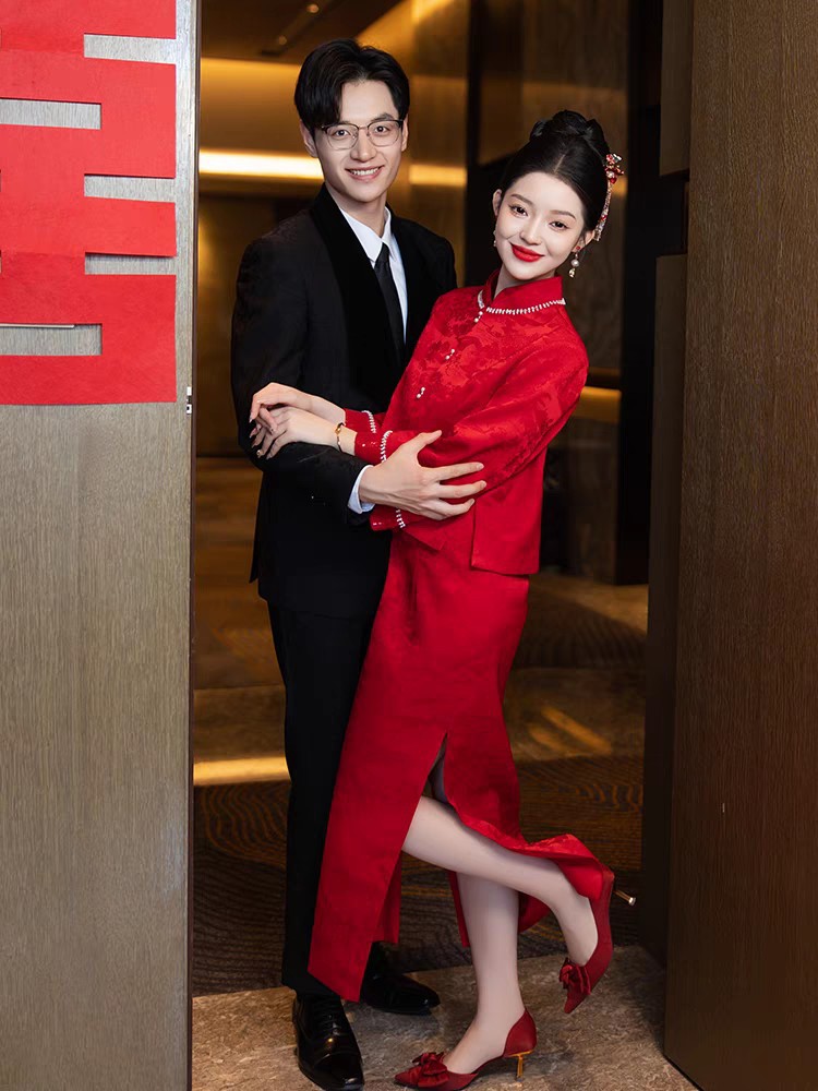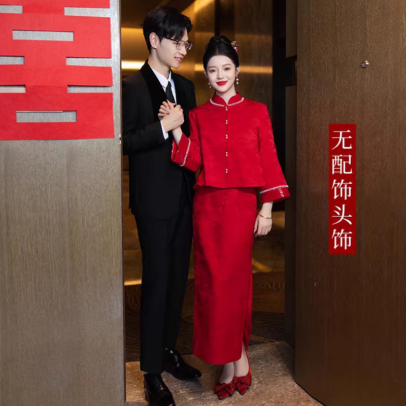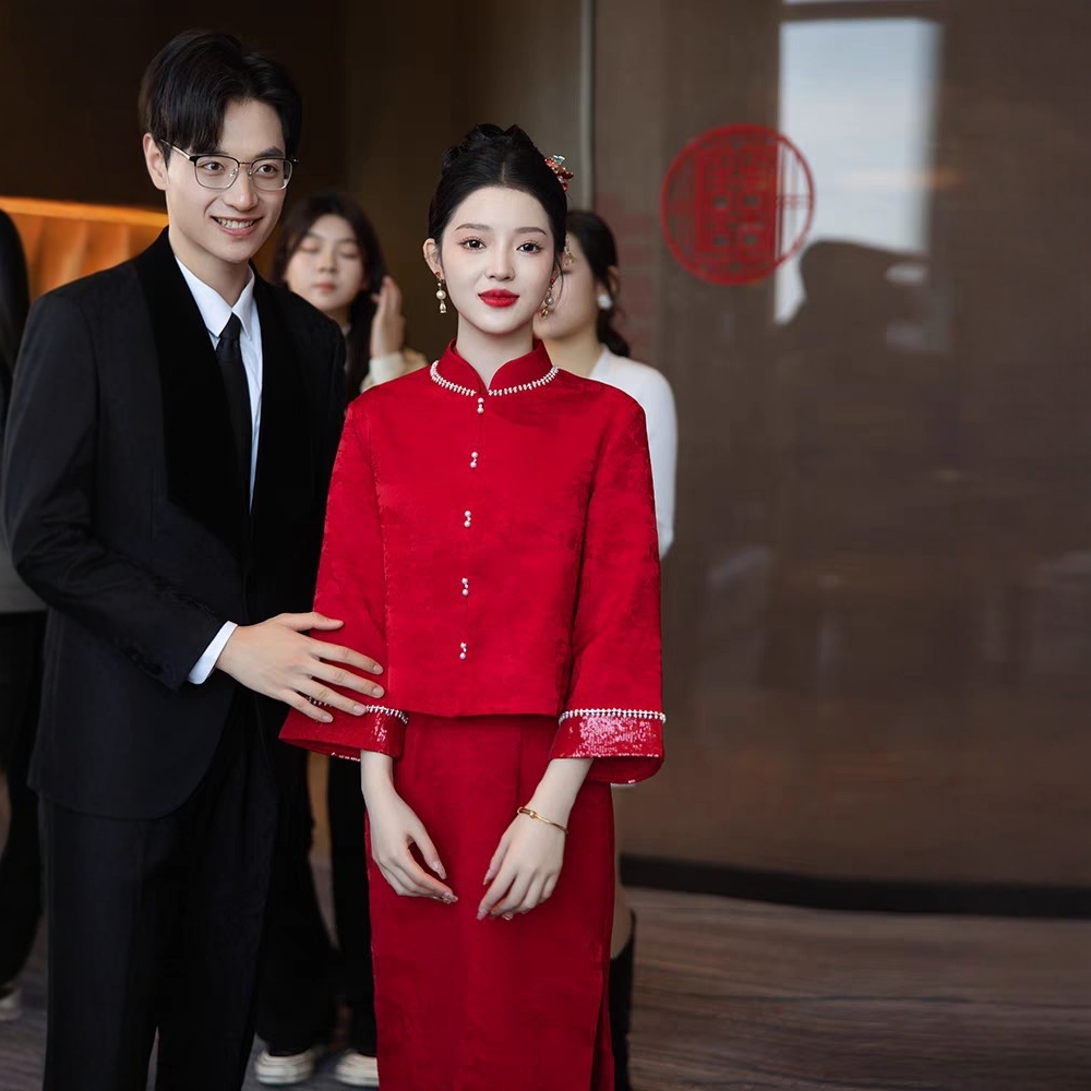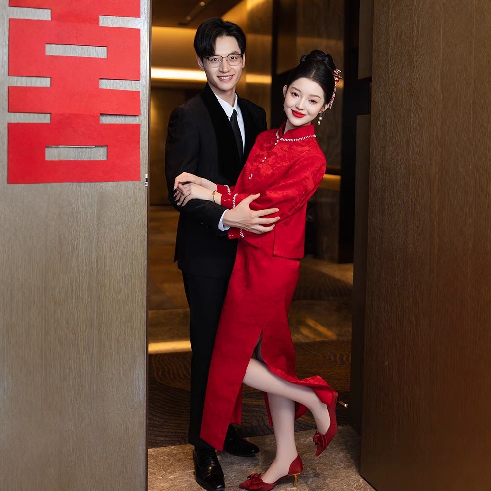Красный новый китайский костюм Cheongsam новый китайский свадебный костюм