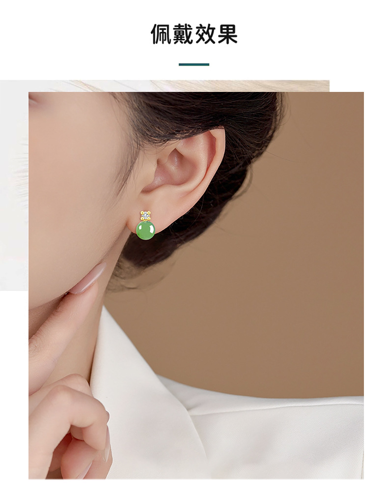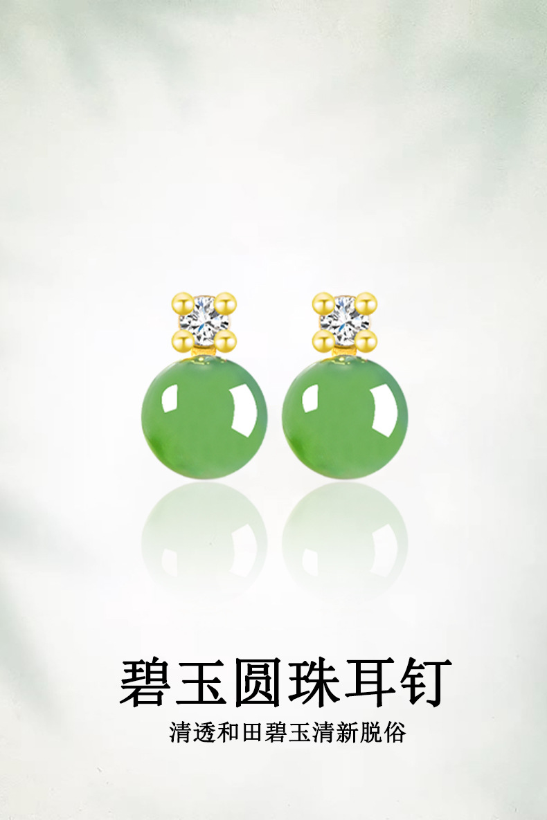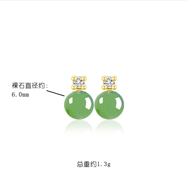 Шпинат зеленый натуральный старый материал Хетиан нефрит яшма 6 мм круглые бусины серьги женская подлинная S925 серебряная инкрустированная нефритовая ушная подвеска