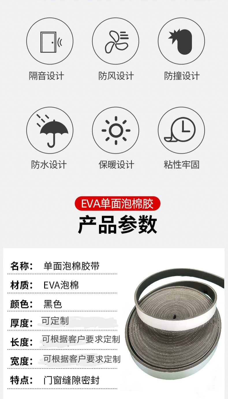 Подклеенный EPDM сейсмостойкая резиновая полоса бесшумная уплотнительная полоса EVA уплотнительная полоса фиксированная резиновая полоса двери и окна резиновая полоса ветрозащитная полоса липкая