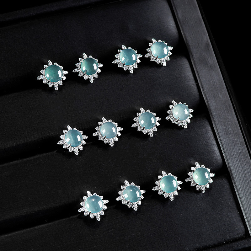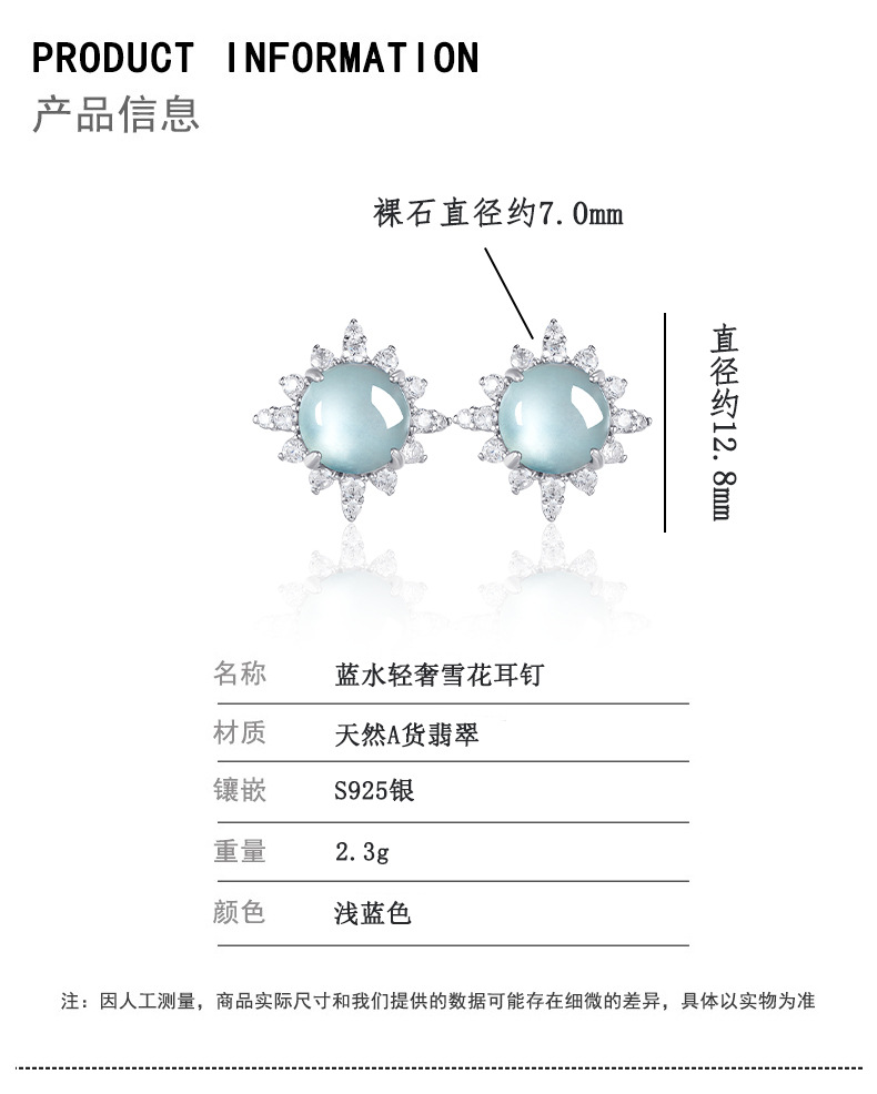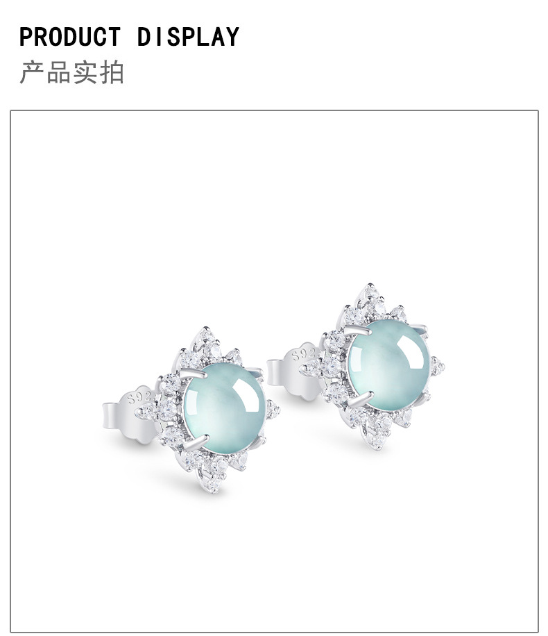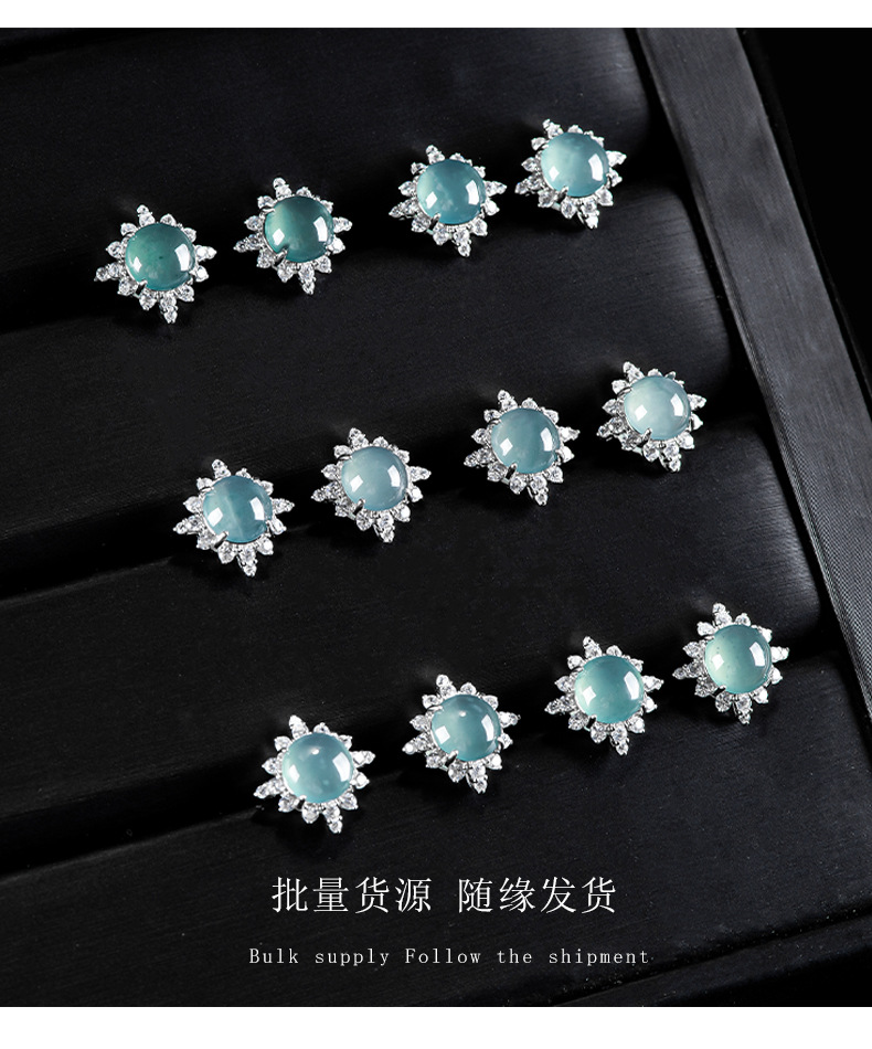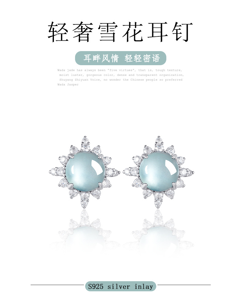 Натуральный товар Изумрудная голубая вода снежинка серьги гвоздь ледяной нефритовый камень S925 Серебряная инкрустированная мода высокого класса женские серьги оптом