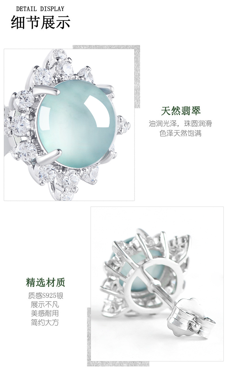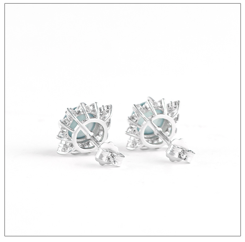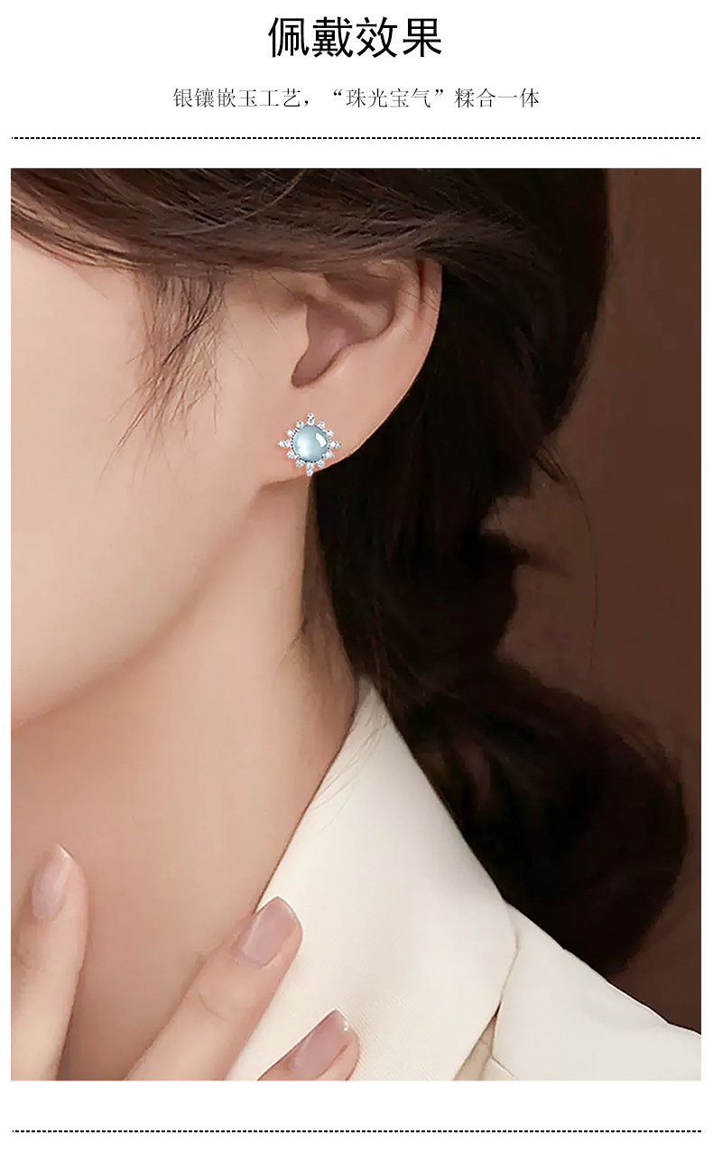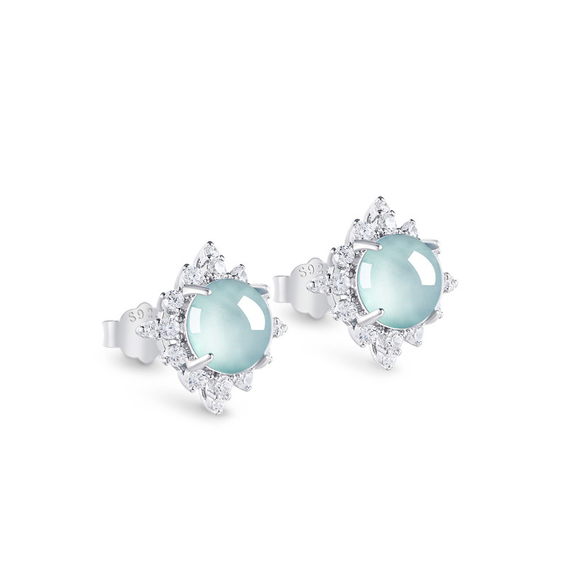 Натуральный товар Изумрудная голубая вода снежинка серьги гвоздь ледяной нефритовый камень S925 Серебряная инкрустированная мода высокого класса женские серьги оптом