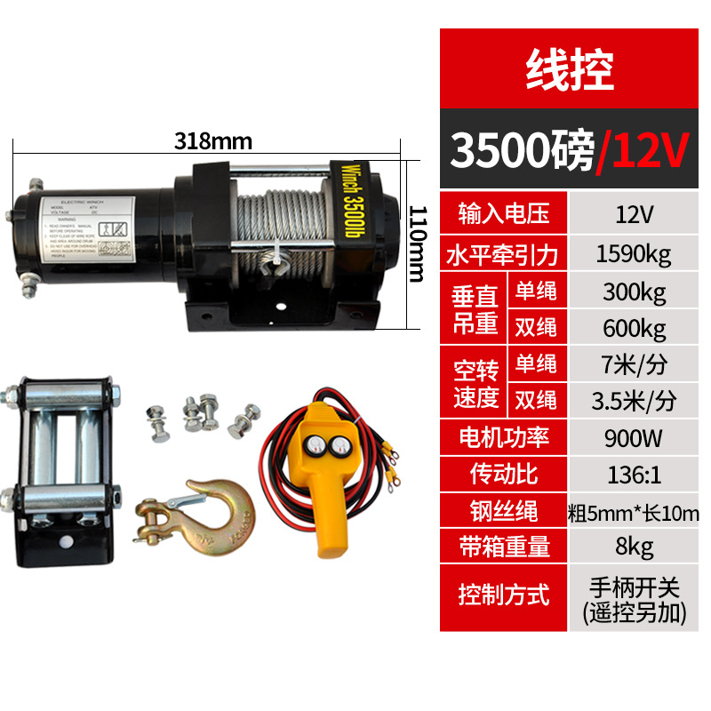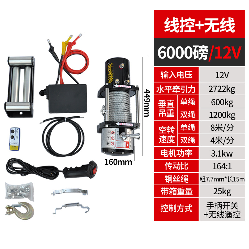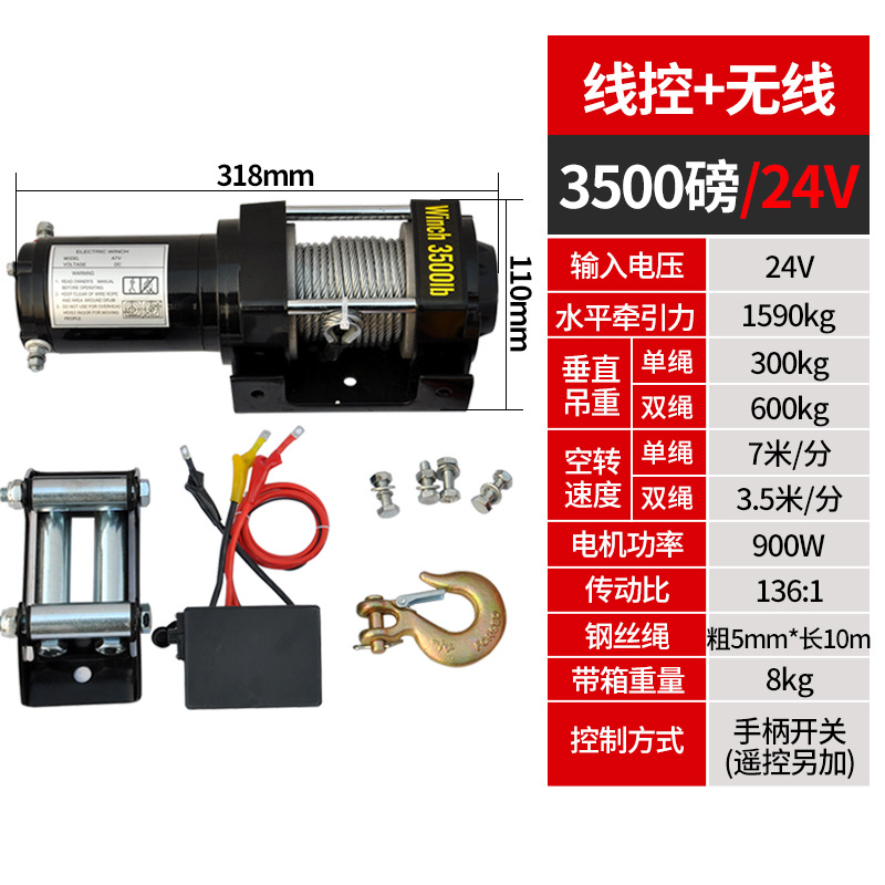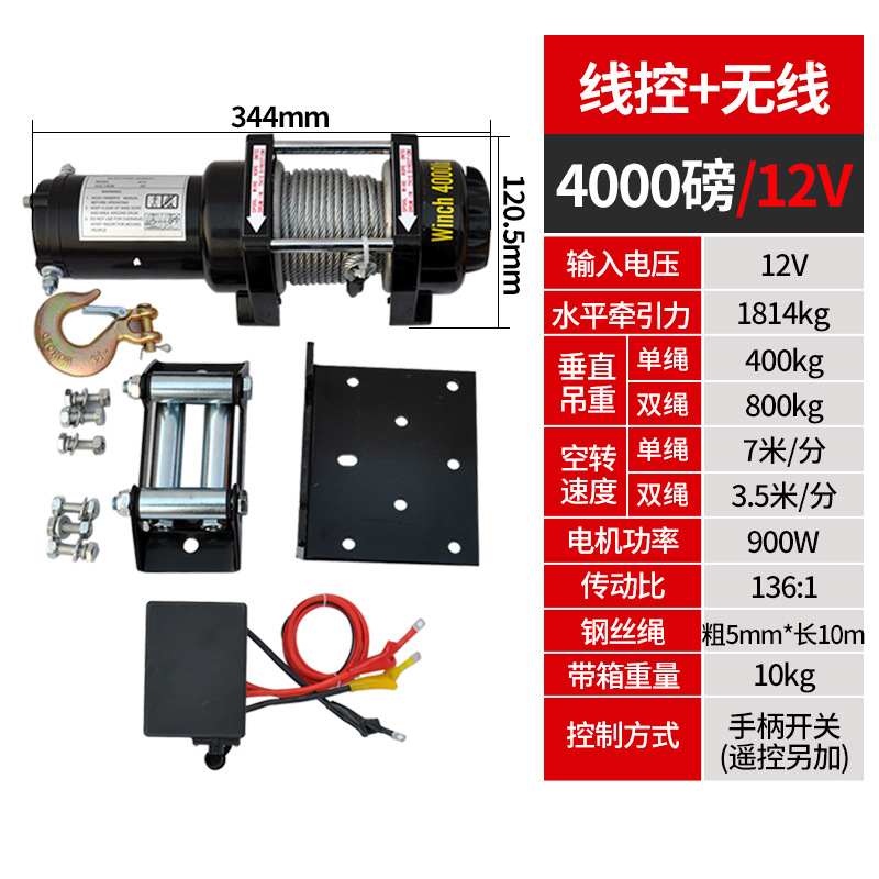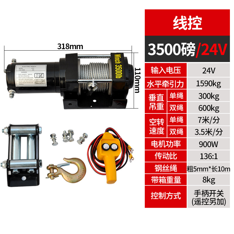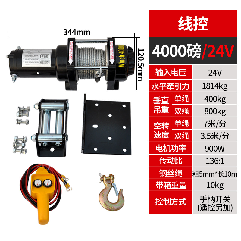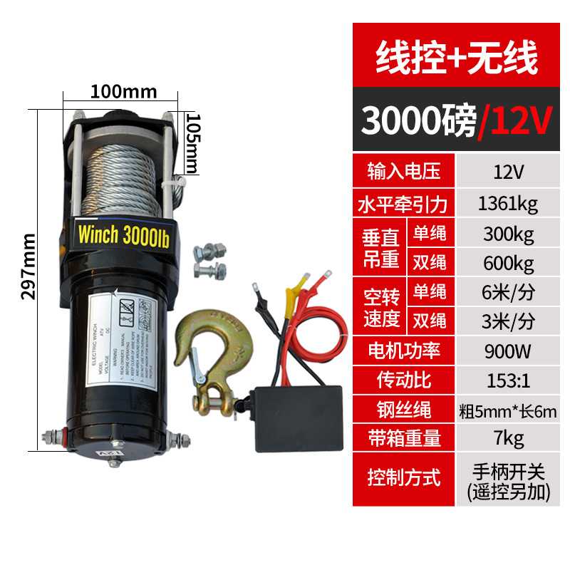 Электрическая лебедка 12В/24В/36В/48В для внедорожников и прицепов, грузоподъемность 3000 фунтов, с дистанционным управлением