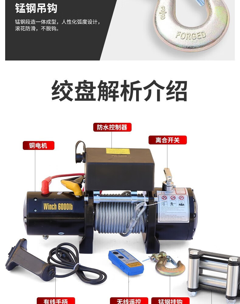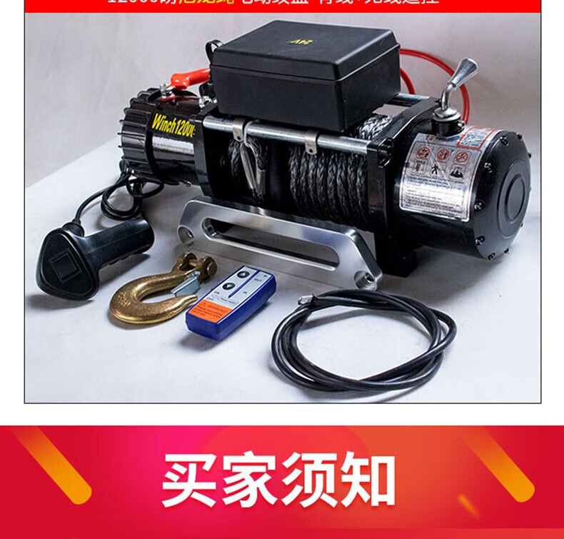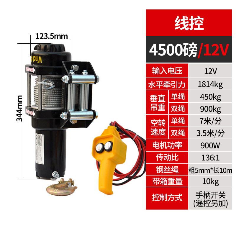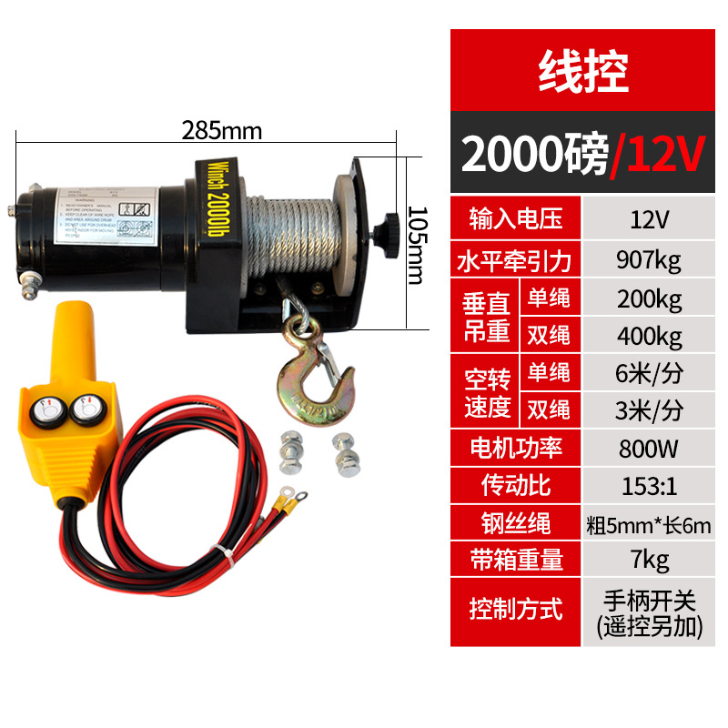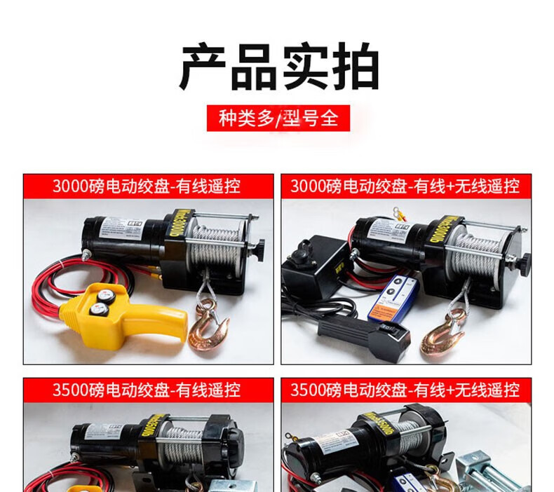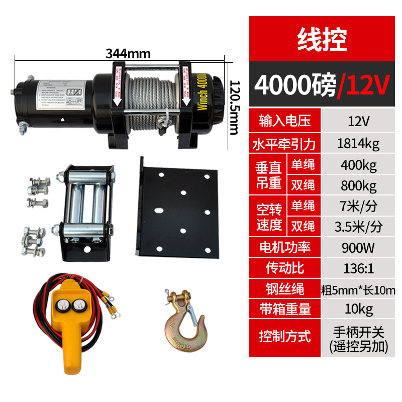 Электрическая лебедка 12В/24В/36В/48В для внедорожников и прицепов, грузоподъемность 3000 фунтов, с дистанционным управлением