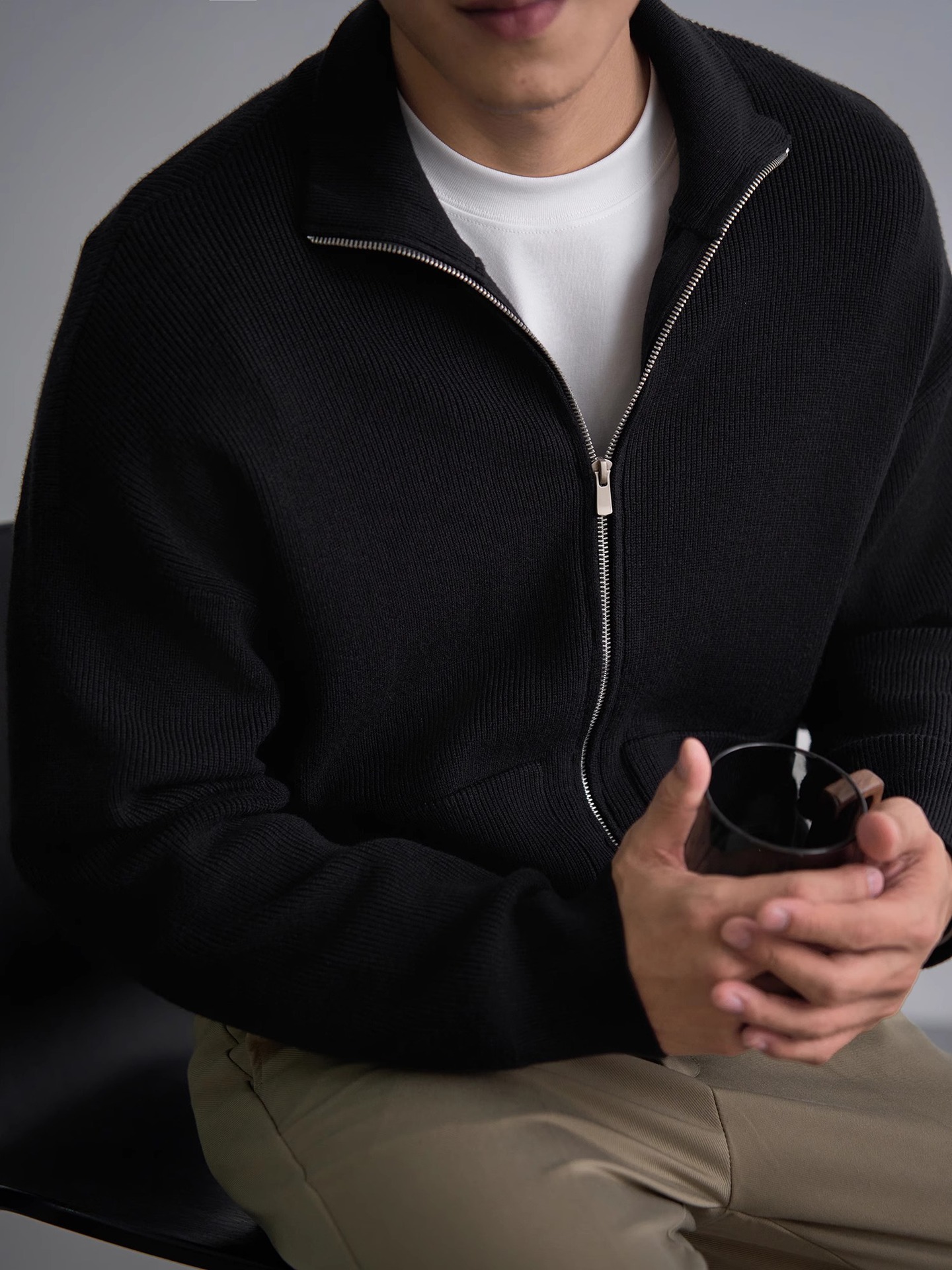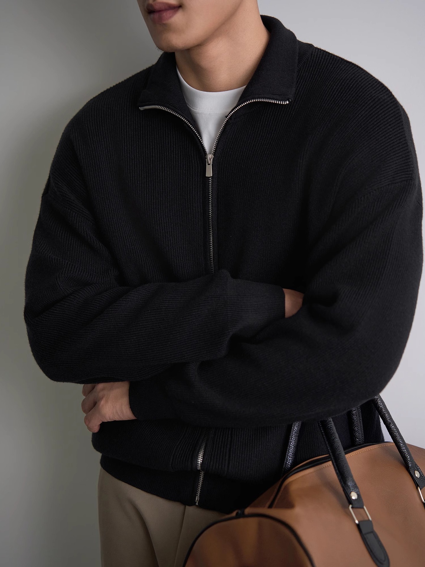 Осенний и зимний новый свитер на молнии мужской топ куртка повседневная тенденция легкая и зрелая мода дикая тонкая рубашка с отворотом