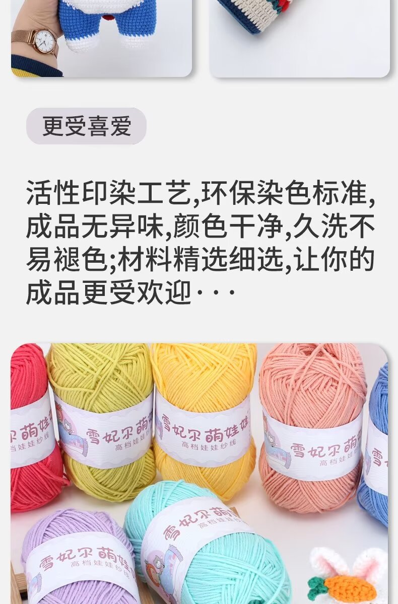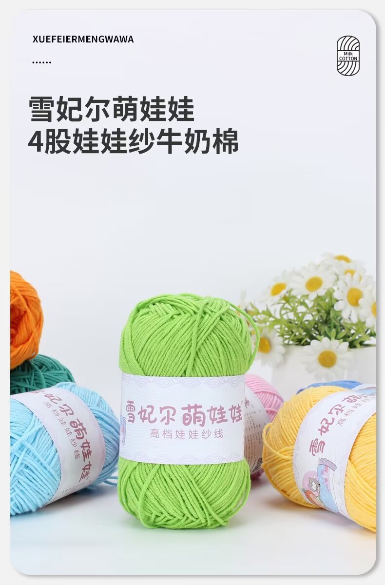 Xuefeier 4-прядная молочная хлопчатобумажная пряжа, 4-прядная чесаная хлопчатобумажная нить, милая кукла ручной вязки своими руками, специально окрашенная