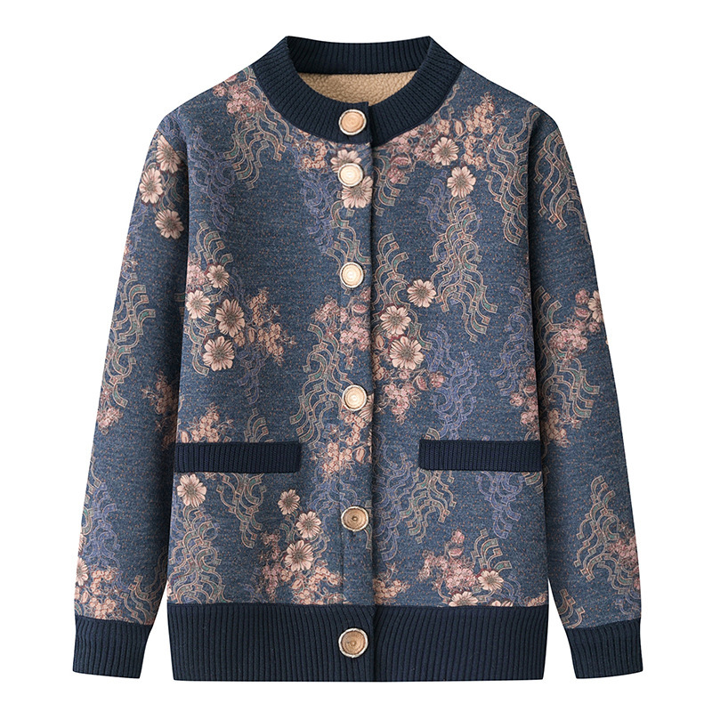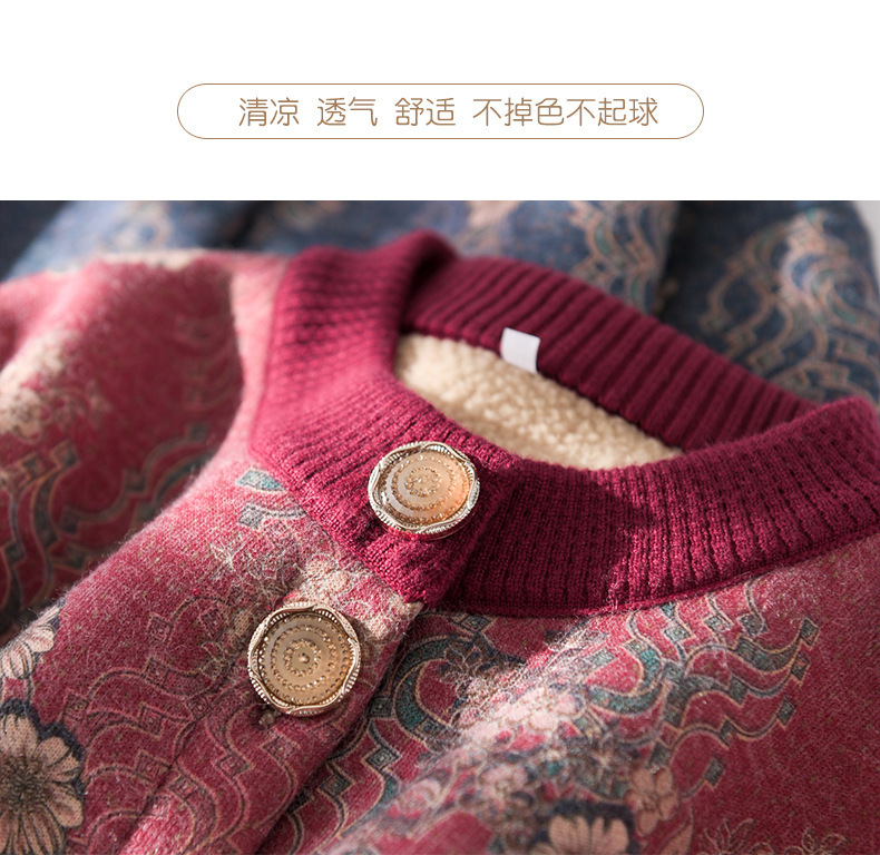 Мама осенние и зимние пальто женский средний и пожилой свитер кардиган бабушка зимняя одежда бархатная утеплитель
