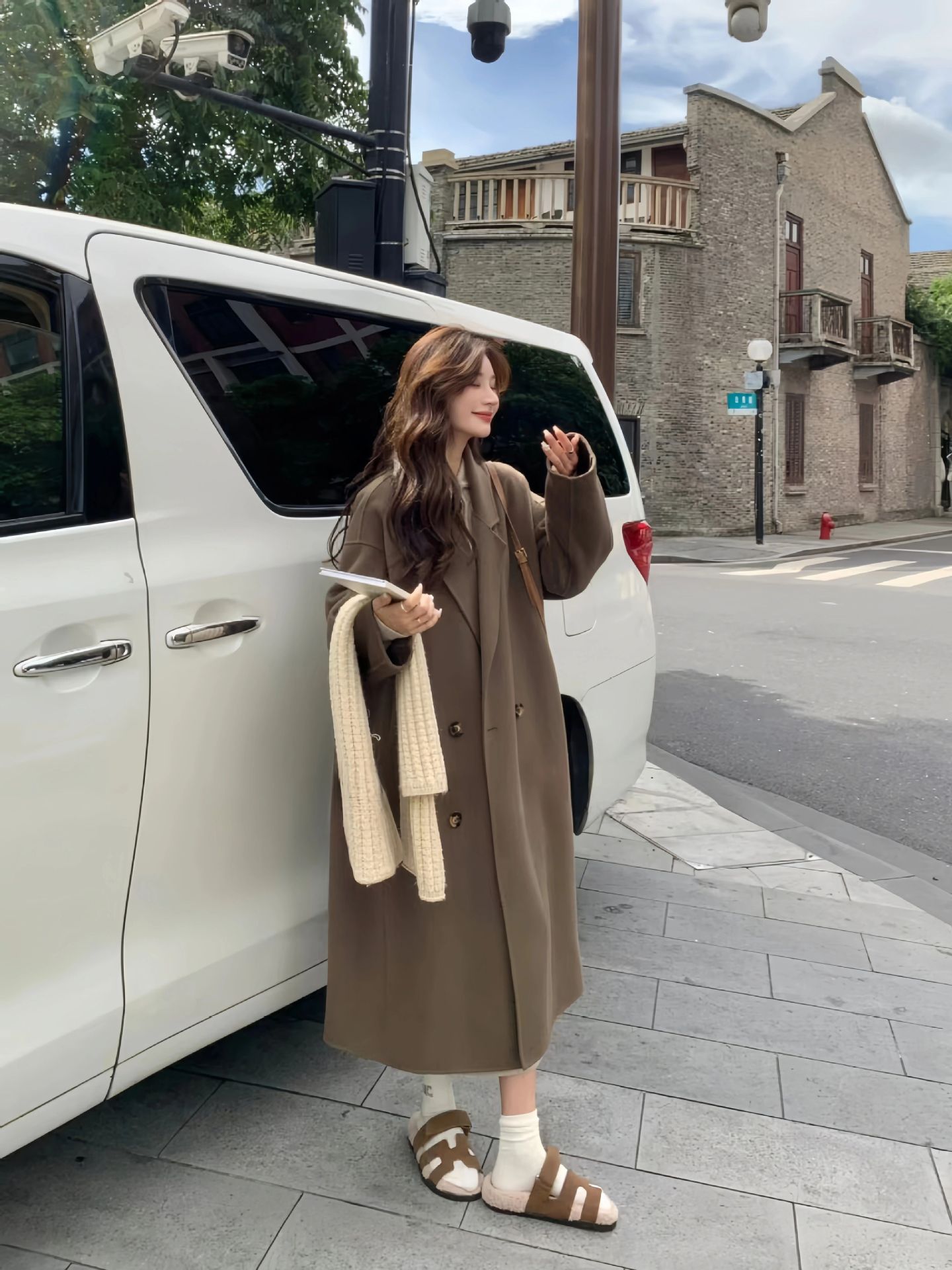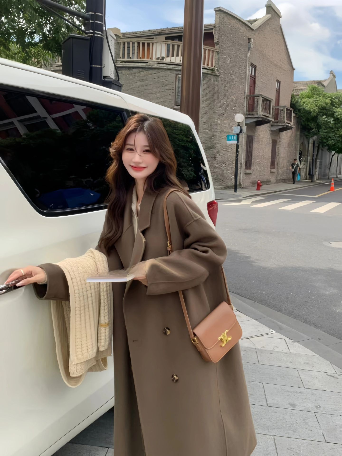Женская шерстяная верхняя одежда средней длины до колена, осень-зима 2025, из высококачественной британской шерсти, модная, небольшого размера.