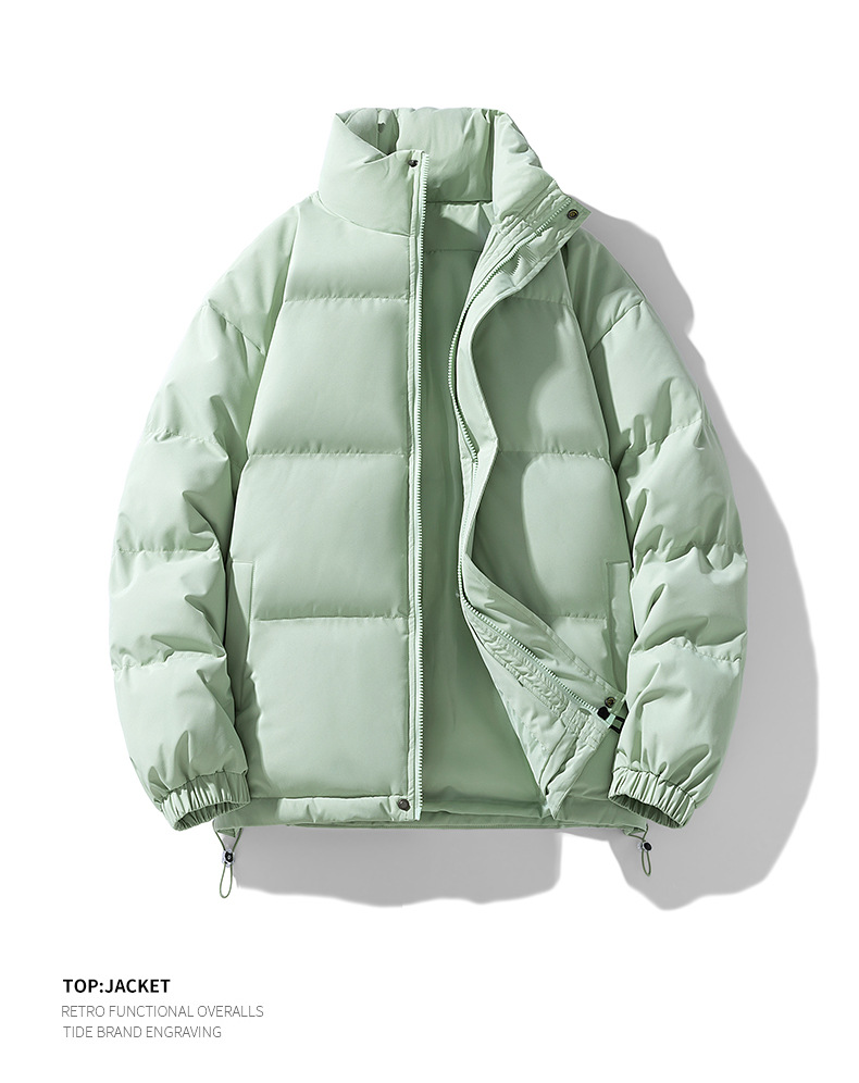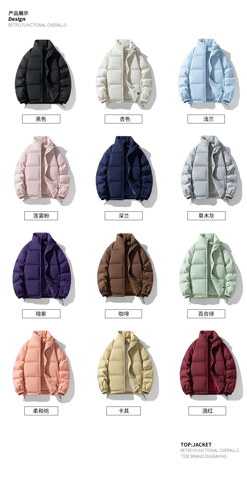 Однотонный пуховик с воротником-стойкой для мужчин и женщин, новинка 2023 года, зимняя утолщенная теплая модная повседневная куртка для парного хлеба