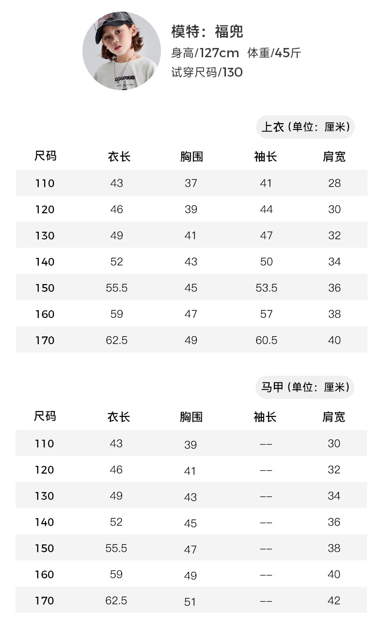 110cm; 120cm; 130cm; 140cm; 150cm; 160cm; 170cm