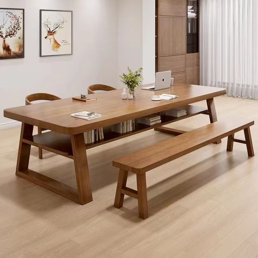 Двухъярусный стол из массива дерева, большой стол для гостиной, офисный стол, письменный стол, современный простой компьютерный стол, рабочий стол