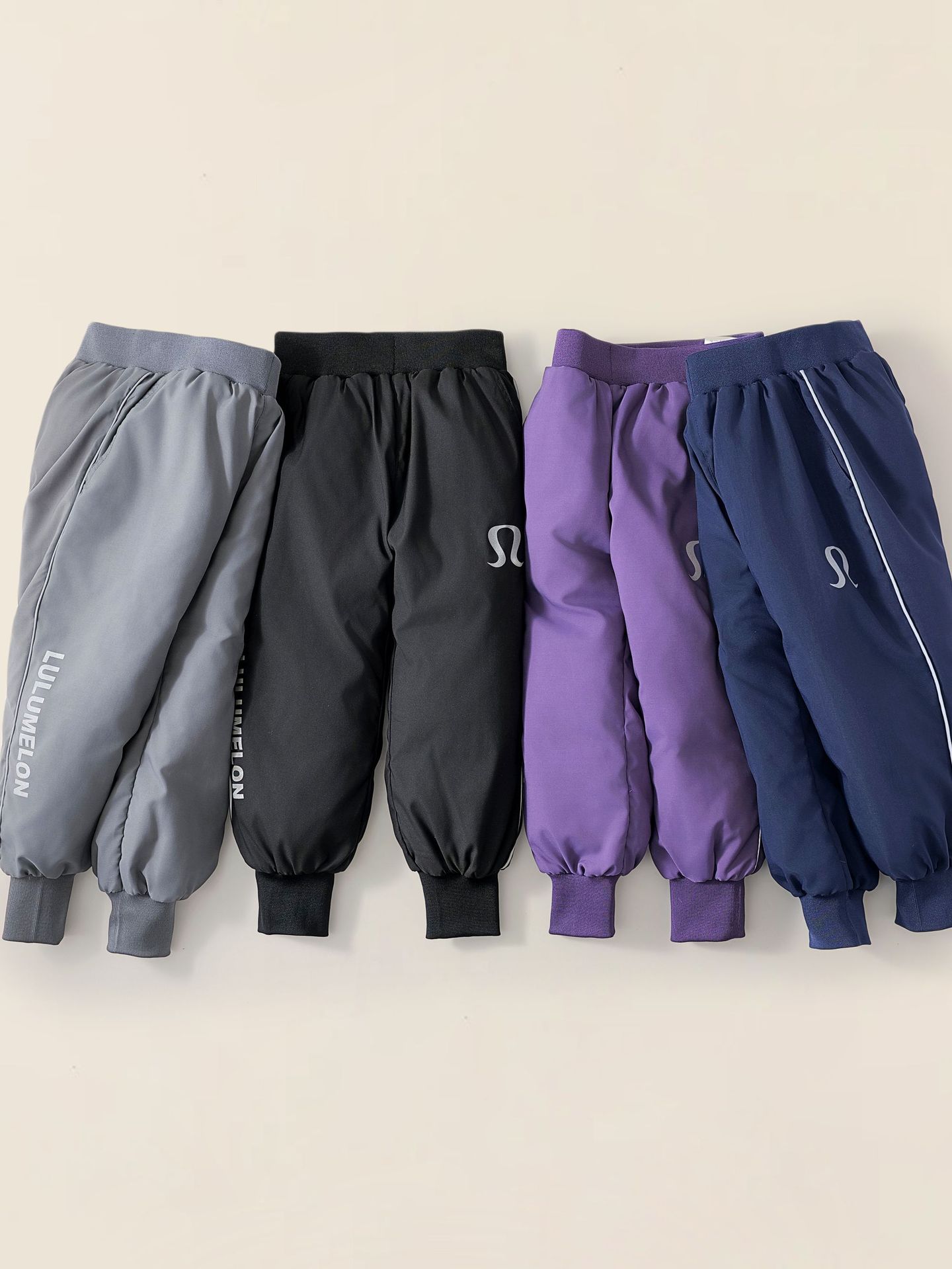 Детские пуховые штаны LuLu, новая модель 2025 года, со светоотражающими полосами для мальчиков и девочек постарше, наполнитель — белый утиный пух, увеличенный размер и утолщенные, простой стиль.