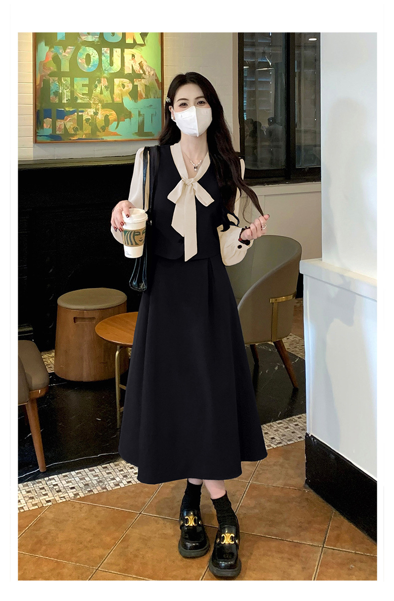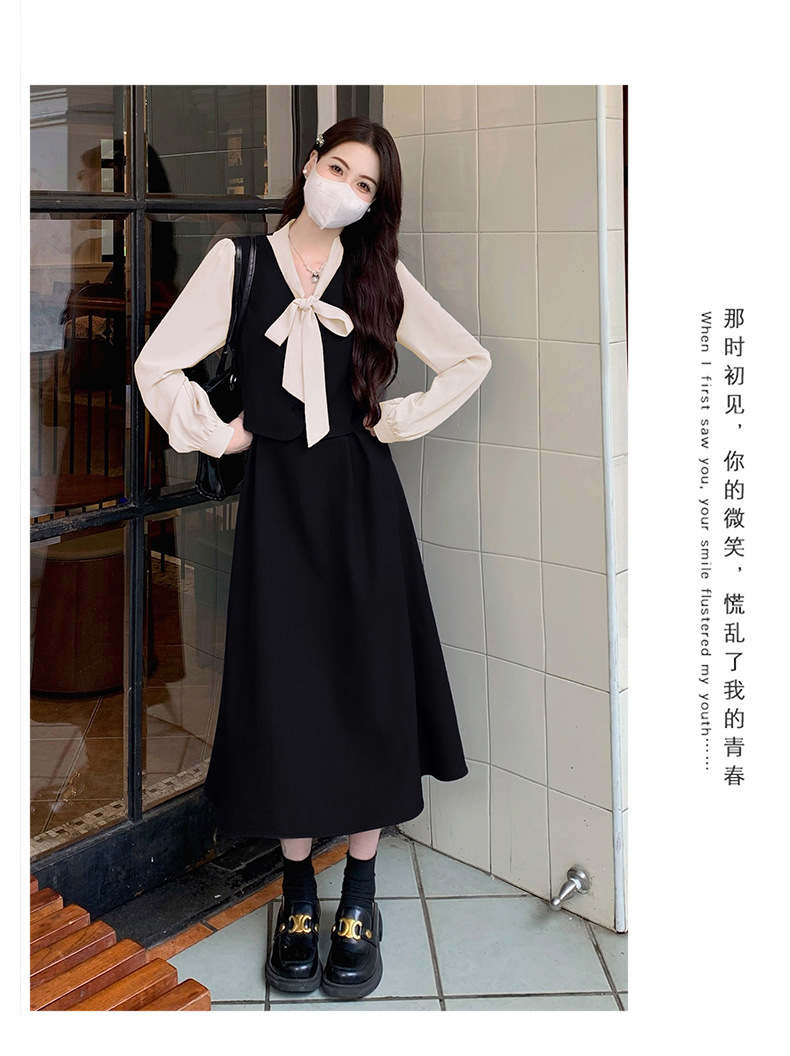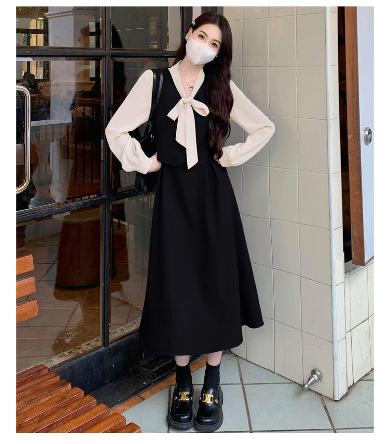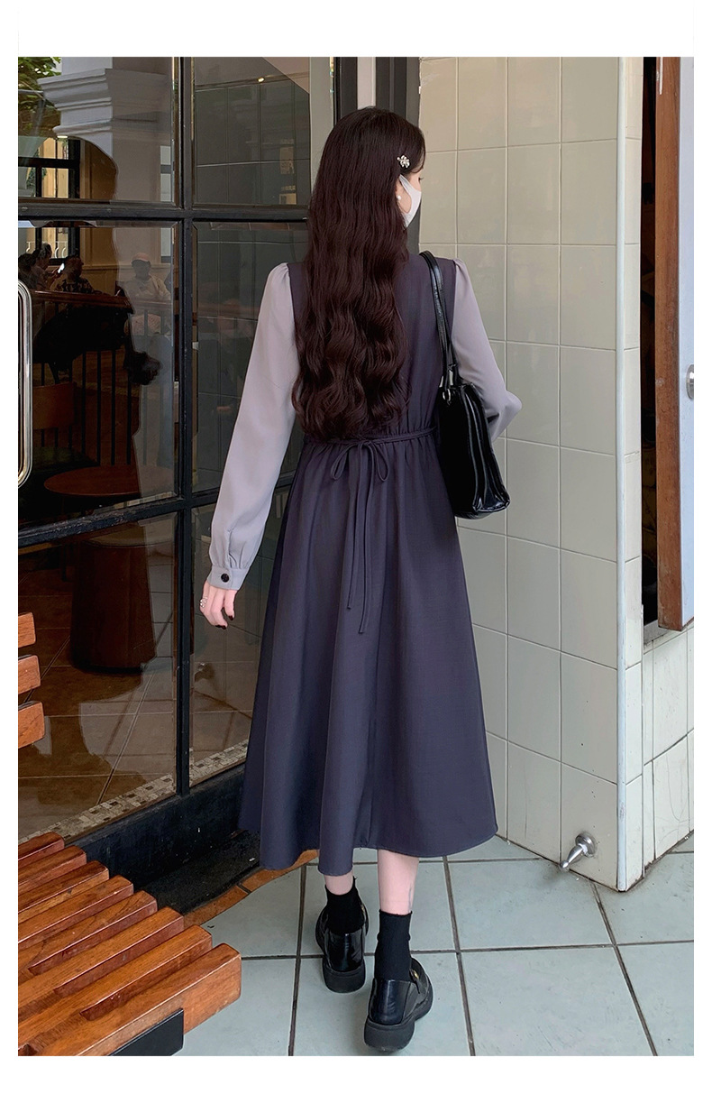 Осень 2022, женская одежда больших размеров для похудения, платье, закрывающее живот, новый стиль, модный корейский стиль, искусственные две штуки