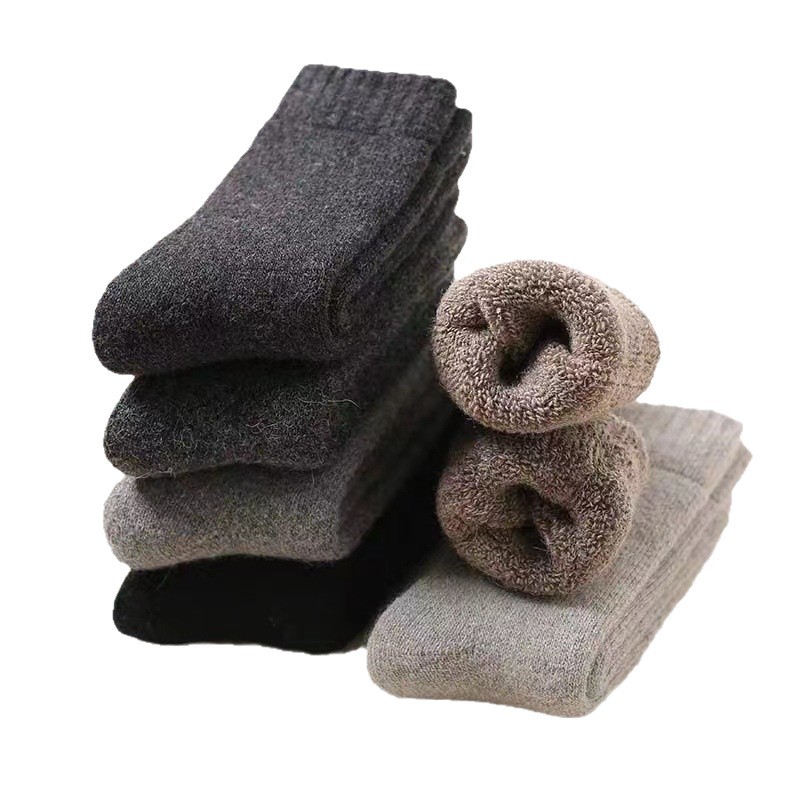 Осенние и зимние мужские и женские шерстяные носки, утолщенные махровые носки, повседневные теплые носки до середины икры, однотонные экспортные кашемировые носки на флисовой подкладке