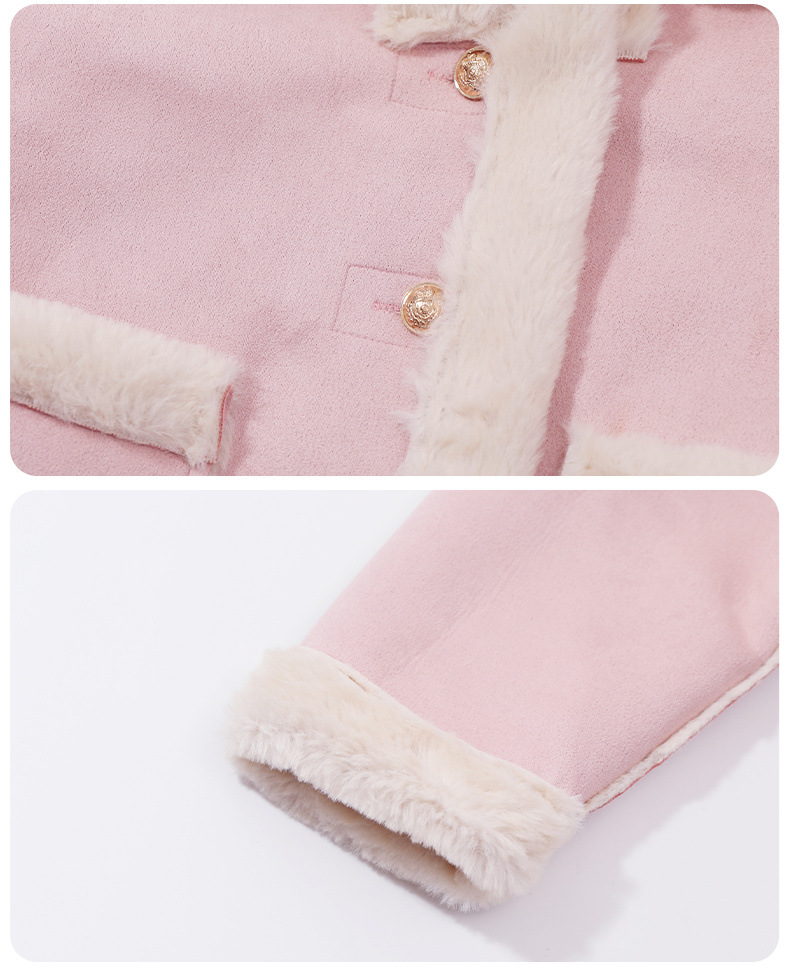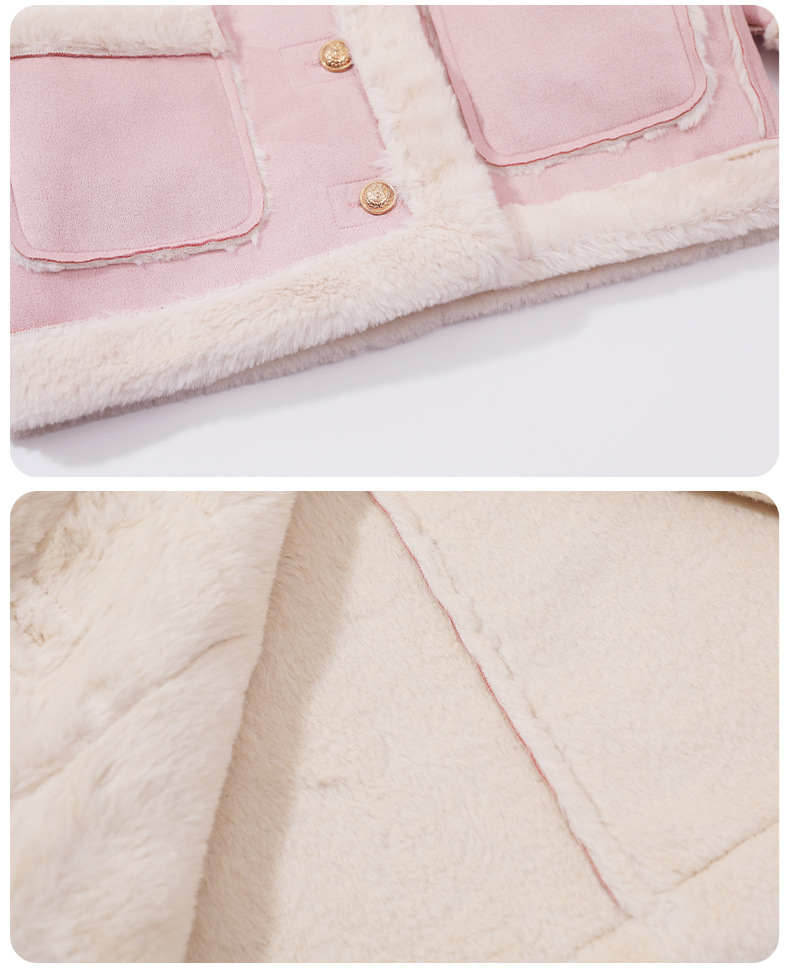 Встроенная куртка из коричневого меха; Розовое шуба; Кремово-белые флисовые колокольчики