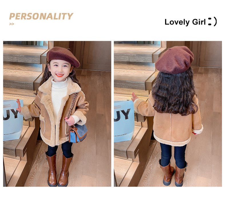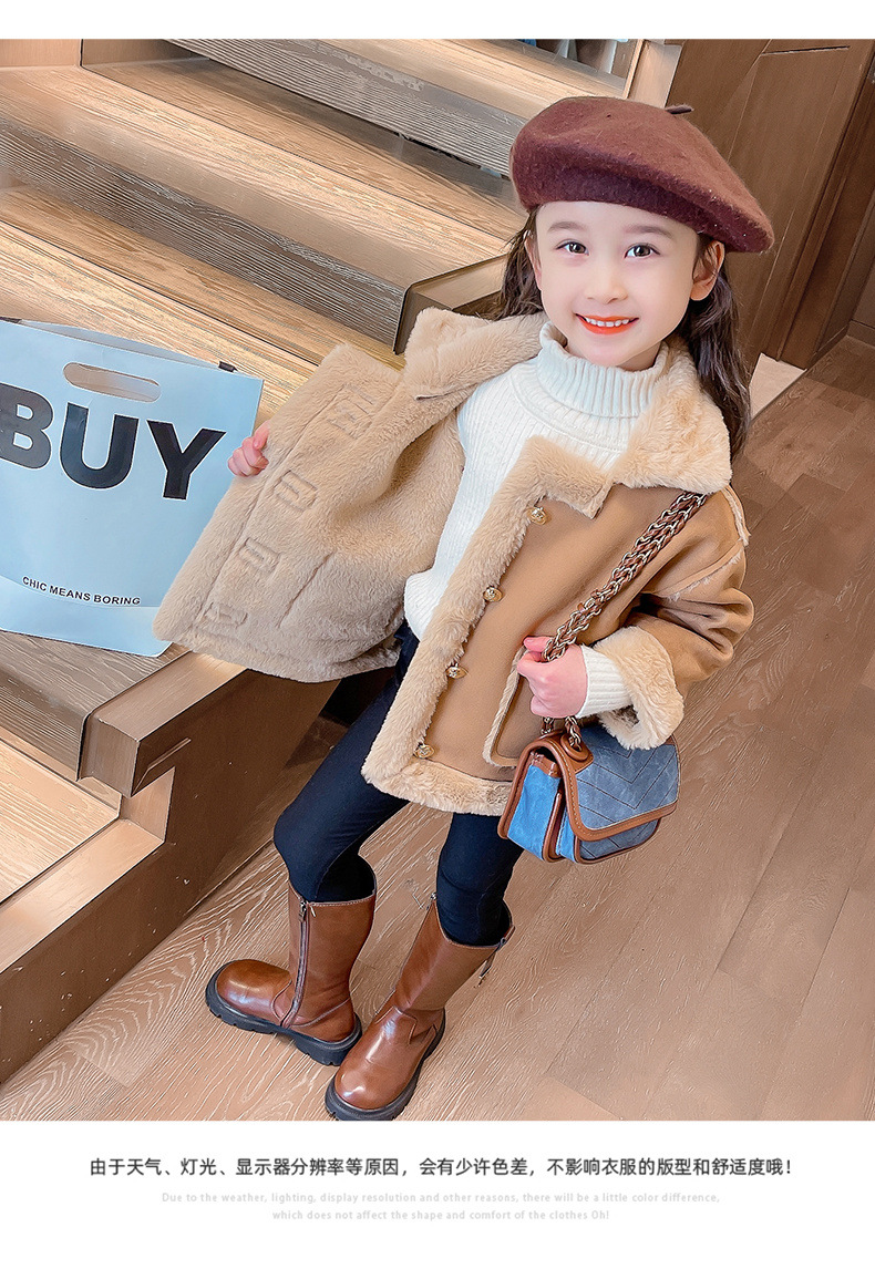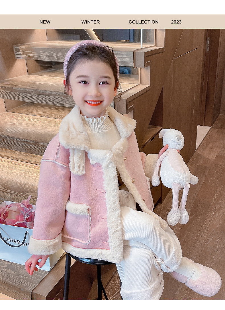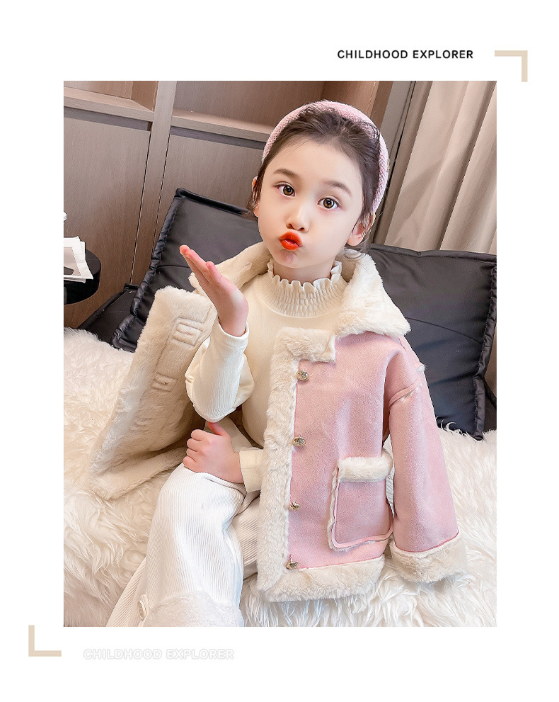Верхняя одежда для девочек, меховая интегрированная, новинка 2025 года, бархатная утолщенная детская верхняя одежда, модная детская зимняя верхняя одежда